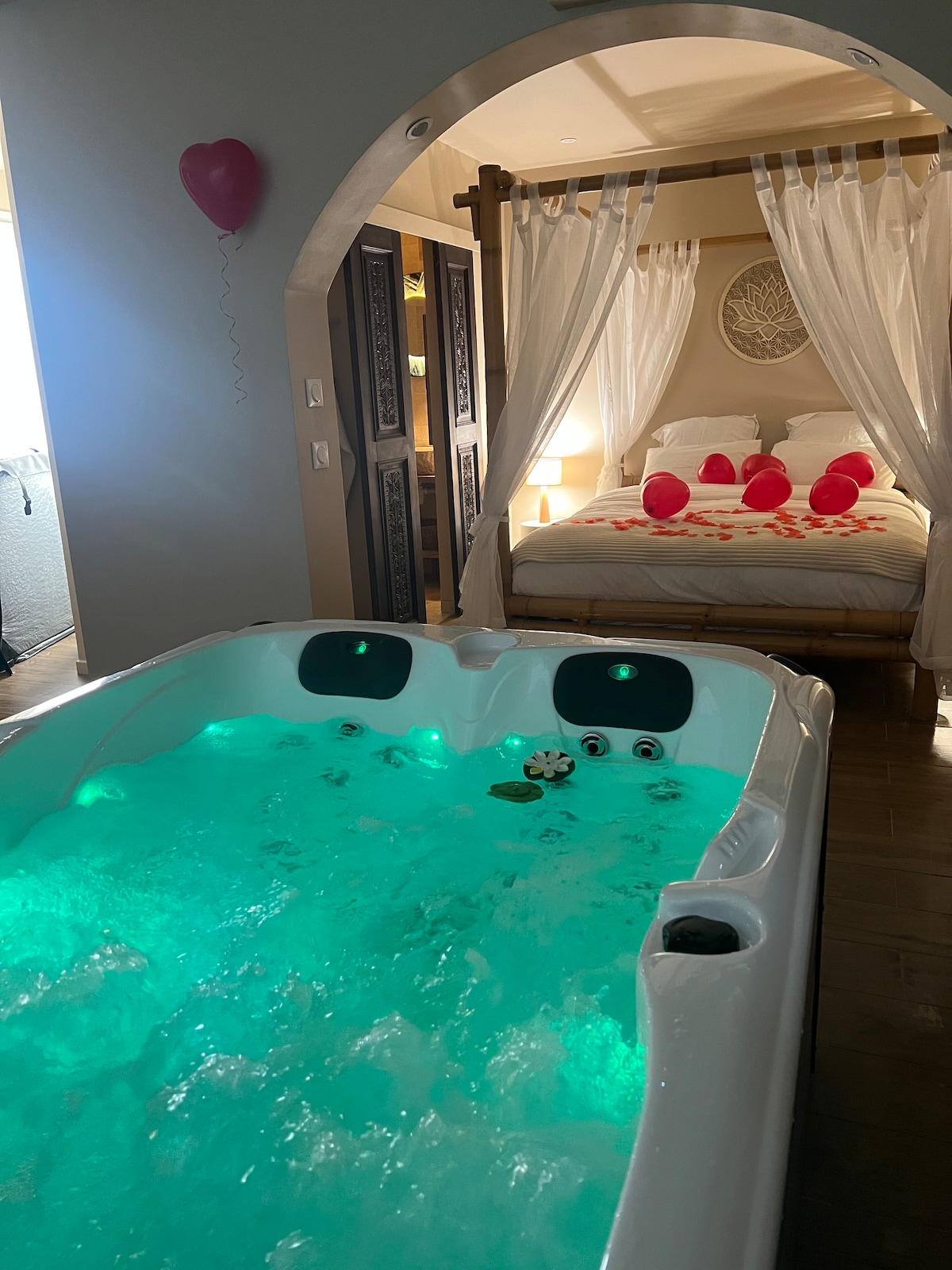 🌟 Un havre de paix … une expérience inoubliable… avec un jacuzzi privatif chauffé et un rétroprojecteur pour regarder tous vos films et séries depuis le jacuzzi… ⭐️ Pensez à nous pour vos événements. Cet espace privatif est une véritable invitation à la détente. Que vous soyez en quête d’une escapade romantique, d’un week-end de détente ou simplement d’un lieu calme pour vous ressourcer, le CinéSpa est un lieu intimiste qui vous accueille dans une ambiance chic … chaleureuse et confortable.