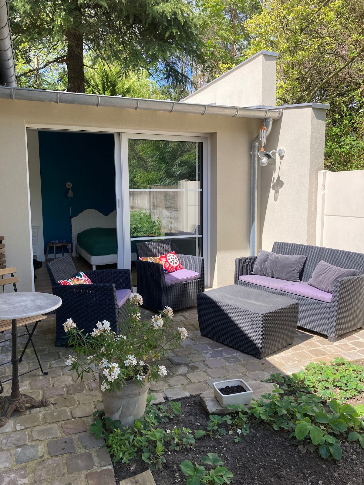 Détendez-vous dans un logement calme et élégant. Nous sommes situés au sein d'une zone pavillonnaire à 17km/50 min en transport du centre de Paris. Nous avons conçu ce studio indépendant au sein de notre résidence principale. Nous y avons porté une attention prononcée au choix des matériaux en respectant notre éthique écologique. Vous aurez accès à une terrasse privative à l'arrière. Les petits déjeuners sont inclus. 🤗 À très vite! Dam et Elo