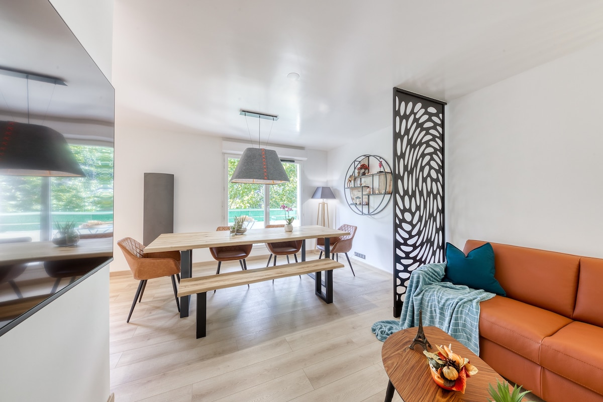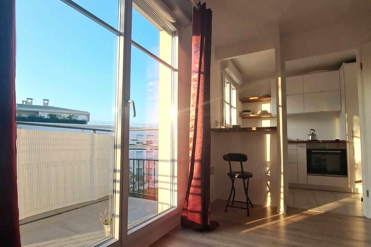 A 45m2 duplex in front of the Seine with a beautiful view from its 12m2 terrasse to enjoy it. Its includes: a living room, a bedroom and a fully equiped kitchen, a sofa bed with a thick and confortable mattress Wifi by fiber Free parking at 20 m away. Rail station and shops at 10mn by feet and 22mn from the center of Paris Saint Lazare ( Opéra area and département store Galeries Lafayette and Printemps ),many metro connexion. ⚠️Please note there is a small hill to clim to get to the station