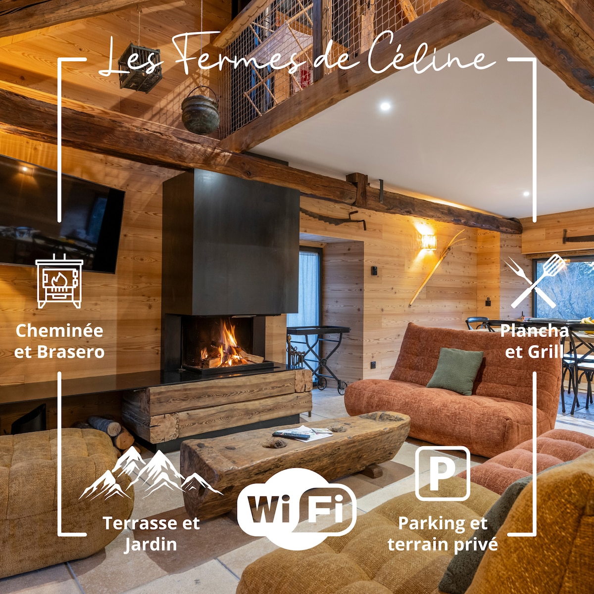 Dans un chalet un logement cosy tout neuf, accessible a pied par un petit sentier. Très calme, terrasse privative et jardin ,exposition sud/ouest vue panoramique exceptionnelle sur la vallée. Base de loisir et du centre du village 600m à pied,Parking public. 1 chambre parentale, un convertible pour 1 enfant dans la pièce principale, TV, Wi-Fi, salle de bain/WC. Cuisine : plaque cuisson, four,four micro-ondes frigo /congélateur, appareil raclette,mixeur, bouilloire machine à café.