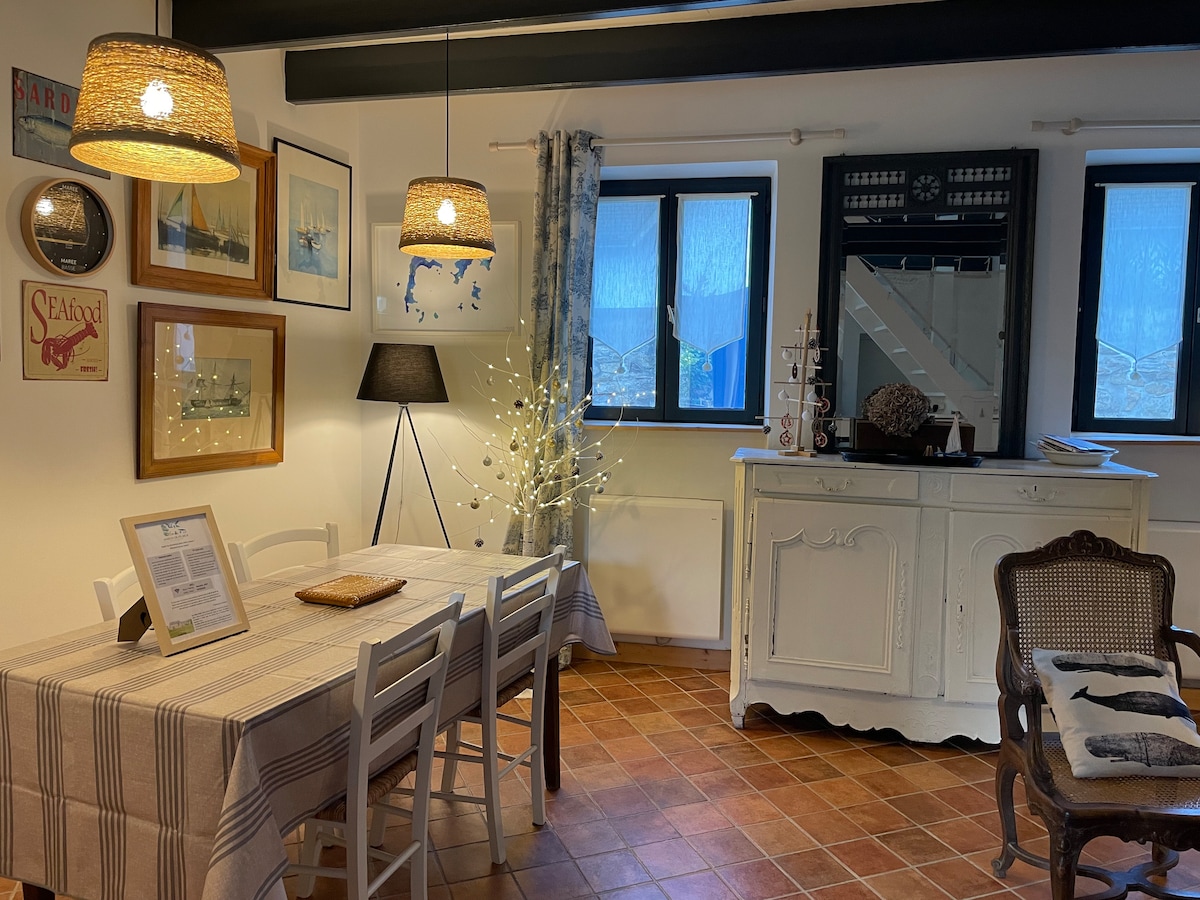 Gîte de la MUSE – Séjour détente entre LEGENDES & MER ! Un cadre unique et confortable ! • RDC, 1 pièce de vie lumineuse ouverte sur une verrière et un jardin clos de 150 m². Séjour confortable avec espace repas. Cuisine ouverte entièrement équipée : plaques, four, lave-vaisselle, micro-ondes, cafetière... Chambre 1 lit double. Salle d’eau, douche à l’italienne. • Etage, 1 grande chambre familiale 1 lit double, 1 lit simple et 1 méridienne.