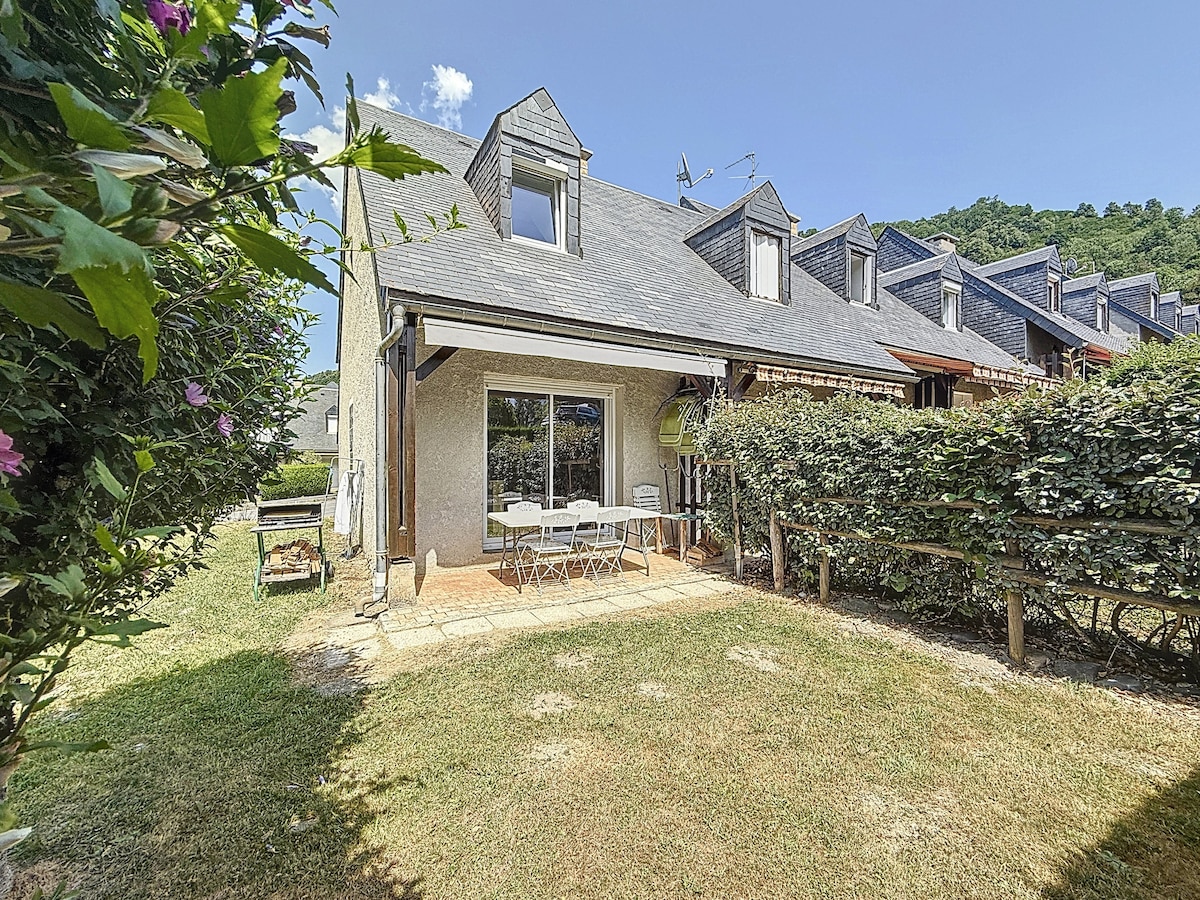 Un charmant appartement pour 4 personnes, 40 m2 avec jardin et terrasse de 45 m2 située au cœur de la vallée d'Aure, dans le petit village de Bazus-Aure à proximité de Saint-Lary (5 mn en voiture) et de sa station de ski. Nous l'avons équipée afin que vous vous y sentiez chez vous. Il fera le bonheur de tous les amoureux de nature, de calme et de montagne. Un appartement cocooning avec une superbe vue sur les sommets tels que l'Arbizon, le pic de Tramezaïgues,