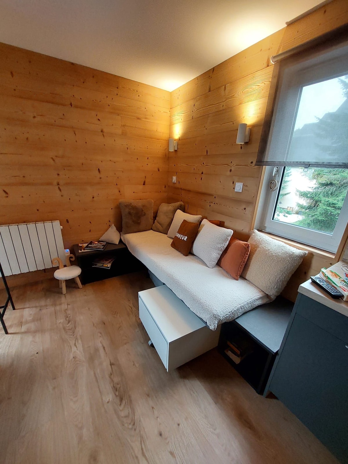 Mon appartement est proche de toutes les commodités, oubliez votre voiture ! La télécabine SKYVALL est à 5 minutes à pied, l'accès au lac et à Balnéa sont tout proches ! Vous apprécierez mon logement, classé meublé de tourisme 3*, pour sa situation avec vue sur les toits du village, la montagne et les parapentes. Dans une décoration chaleureuse et cosy, petits et grands y trouveront leur bonheur, wi-fi, jeux pour toute la famille, livres enfants, musique, luges sont à disposition.