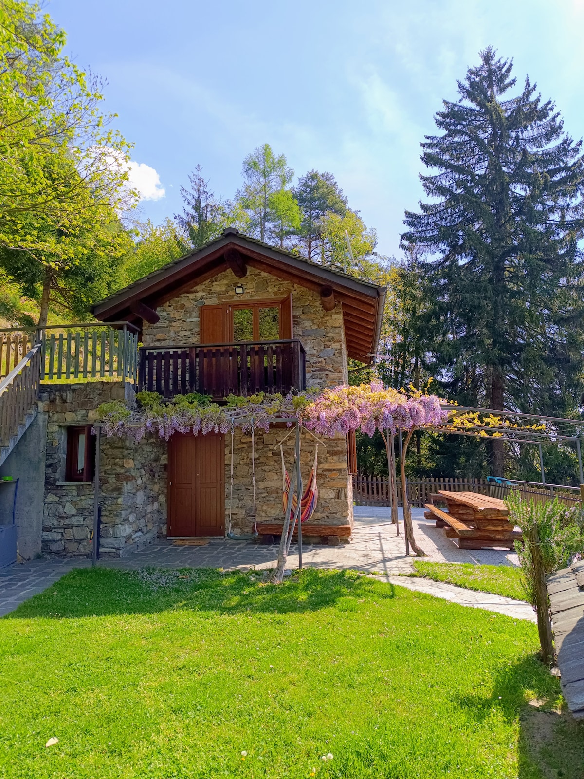 Baita ai confini della Riserva Naturale Le Piramidi di Postalesio. Intera casa dotata di ampio giardino recintato, cucina, soggiorno e bagno con doccia.Camera al piano superiore con letto a castello matrimoniale e possibilità di un lettino per neonati.All'esterno barbecue a legna ed uno spazioso tavolo all'ombra di un pergolato di vite e glicine. Ideale per un soggiorno immersi nella natura in pieno relax! NOVITA'! Possibilità di noleggio e-bike in loco per esplorare bellissimi sentieri.