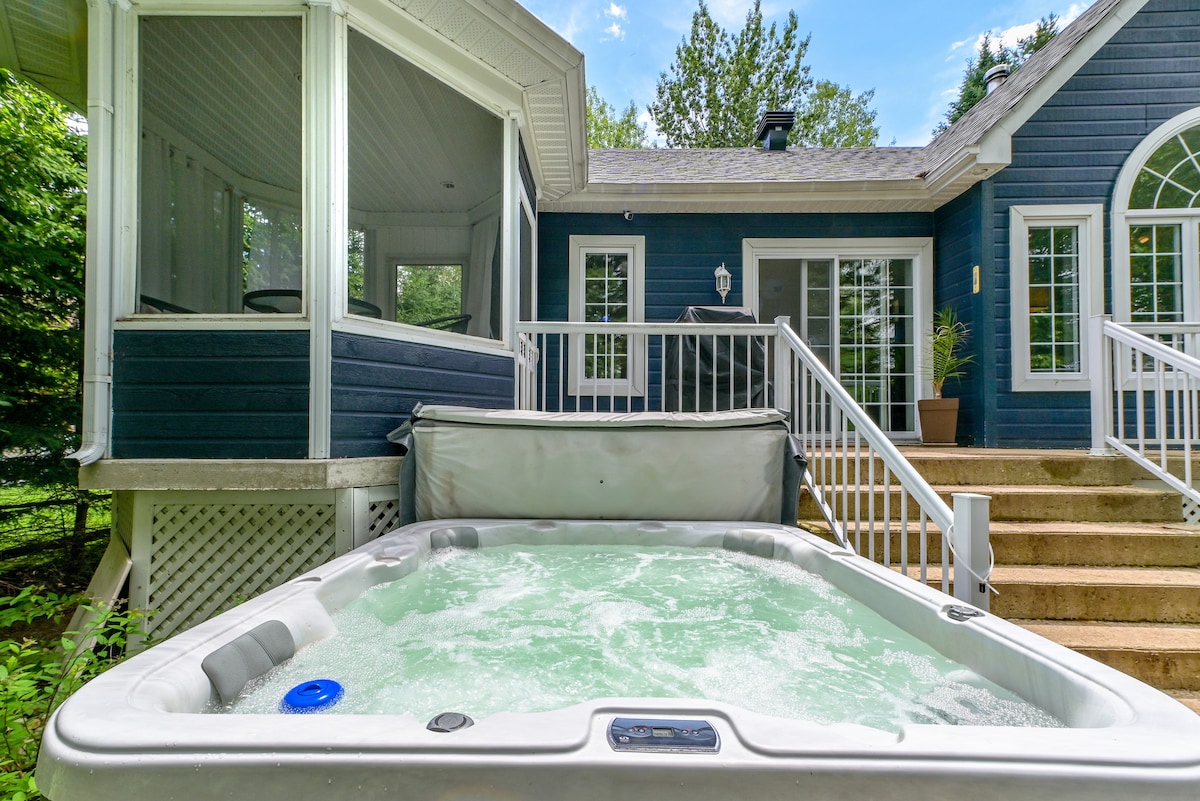 For your vacations choose the Chalet Horizon, an Eden in nature with a view of the mountains ♥ You will appreciate the chalet thanks to: ✷ Semi-private beach 5 minutes away ✷ Large private land, totally surrounded in pure nature ✷ Large bright windows with a view of the horizon ✷ Luxurious and comfortable spaces ✷ Spa open all year round ✷ Terrace equipped with a BBQ and gas fireplace ✷ Smart TV with speakers ✷ Indoor cozy gas fireplace ✷ Foosball table ✷ Wine bar