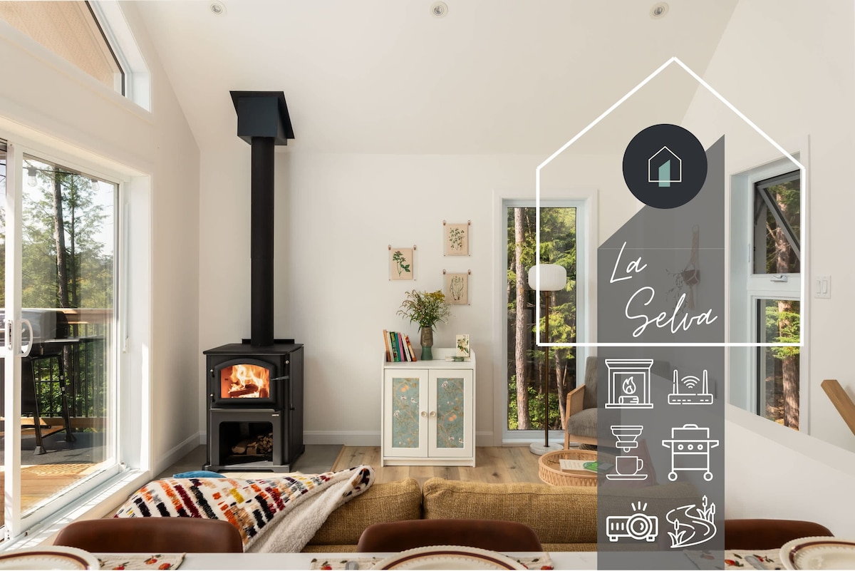Our Nordic forest chalet is perfect for spending quality time as a couple (or with a kid), or for a work-retreat (with high-speed WiFi). The wooden interior is warm and cozy. The full-height windows offer stunning views over a forested valley. The open-concept kitchen and living room keep you in the conversation while cooking. If you prefer to cook outside, there is a fire pit with a grill and outdoor dining table. Only 70-min drive from Montreal. The lake is a 25-min walk if you park nearby.