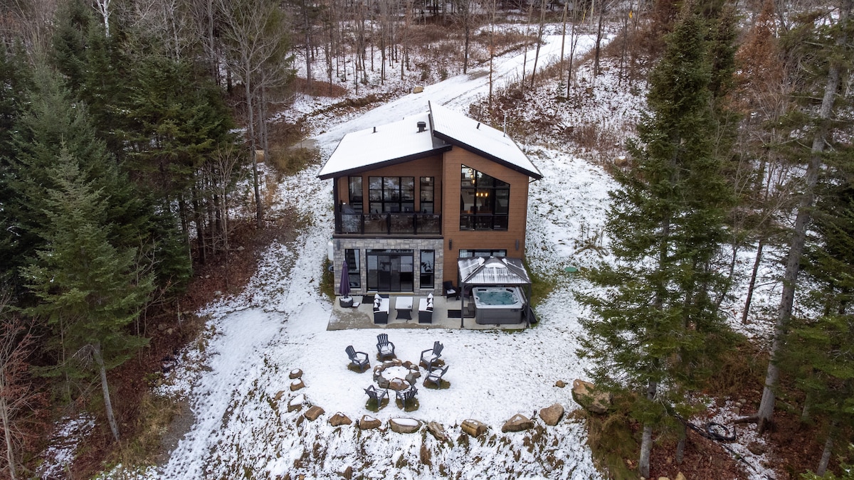 For your vacations choose the Chalet Horizon, an Eden in nature with a view of the mountains ♥ You will appreciate the chalet thanks to: ✷ Semi-private beach 5 minutes away ✷ Large private land, totally surrounded in pure nature ✷ Large bright windows with a view of the horizon ✷ Luxurious and comfortable spaces ✷ Spa open all year round ✷ Terrace equipped with a BBQ and gas fireplace ✷ Smart TV with speakers ✷ Indoor cozy gas fireplace ✷ Foosball table ✷ Wine bar
