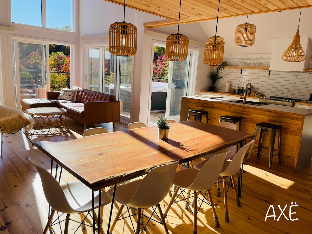 For your vacations choose the Chalet Horizon, an Eden in nature with a view of the mountains ♥ You will appreciate the chalet thanks to: ✷ Semi-private beach 5 minutes away ✷ Large private land, totally surrounded in pure nature ✷ Large bright windows with a view of the horizon ✷ Luxurious and comfortable spaces ✷ Spa open all year round ✷ Terrace equipped with a BBQ and gas fireplace ✷ Smart TV with speakers ✷ Indoor cozy gas fireplace ✷ Foosball table ✷ Wine bar