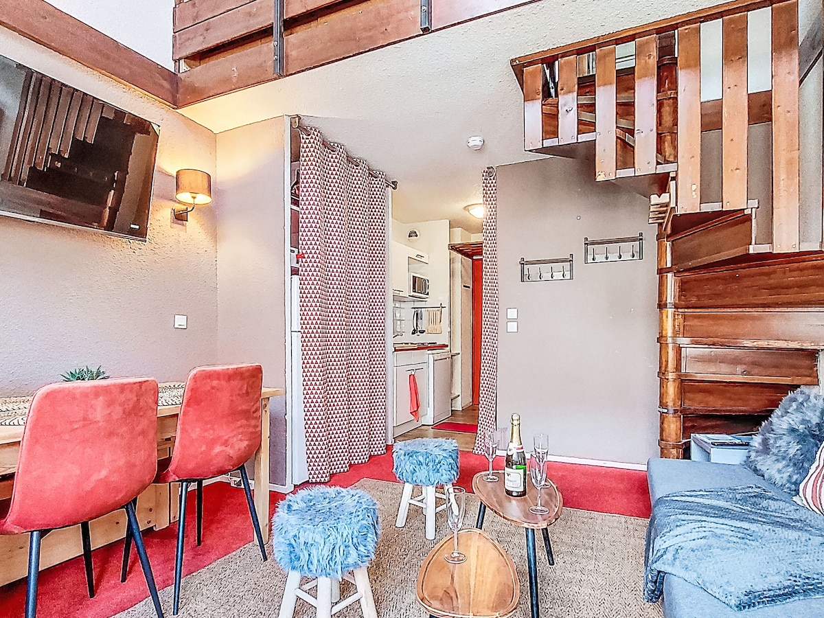 可爱的翻修单间公寓,可容纳4/5人,位于Arc 1800