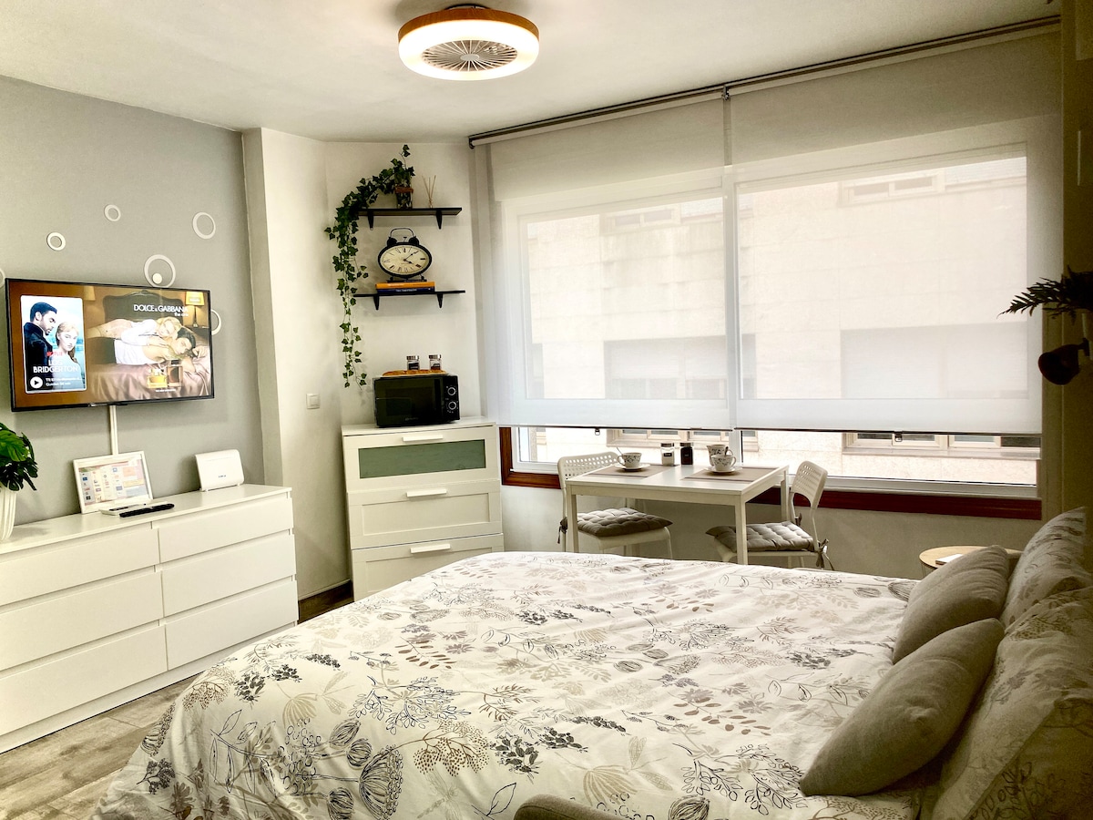 Encantador estudio vacacional ideal para alojarte en Vigo . Ubicado en el centro justo al lado de la estación de tren y autobús Vialia, facilitando tu llegada y partida, así como los desplazamientos dentro de la ciudad . Esta equipado con todo lo que necesitas para una estancia cómoda. Incluye un sofá-cama de fácil apertura, una cocina completamente equipada y un baño privado con ducha . Su ubicación te permite disfrutar de la vida nocturna y de nuestras maravillosas playas. No lo dudes