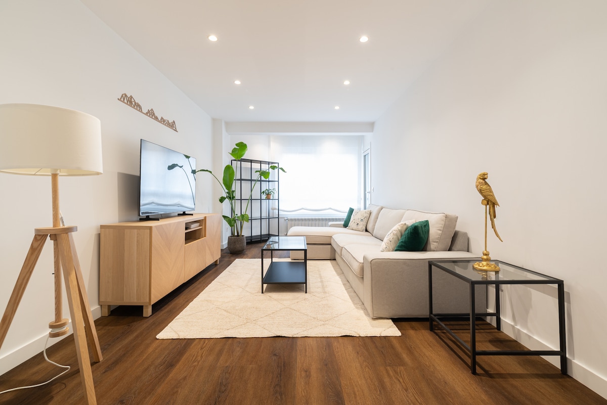 Santiago’s Apartment es un apartamento de diseño, en un edificio con portero físico 24h, en una calle con mucha luz y recién renovada. Garaje en el edificio. Y a 30 sg de la salida de la AP-9. Se puede ir a pie a c/ Príncipe, Casco viejo, el puerto… todo a un paseo. Las valoraciones son muy buenas, deseo que tú te vayas con igual sensación que las otras personas. Si te orienta para saber si es ideal para ti, los huéspedes han sido parejas de vacaciones y personas para estancias de trabajo.