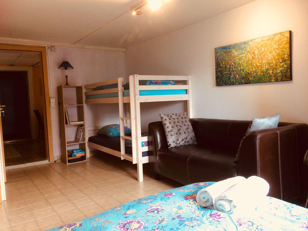 En Suisse, dans le petit village de Leysin, canton de Vaud, appartement-studio au rez-de-chaussée d'un chalet, 2 pièces 40m2 avec wifi, séjour-salon, salle de bain avec douche, coin canapé-lit, cuisine équipée avec induction et table-billard. Entrée indépendante, terrasse 15 m2 avec vue sur la plaine du Rhône et Dents du Midi, une place parking devant le chalet . Situé à 1300m d'altitude, à 300 mètres de la gare et du bus navette pour rejoindre pistes de ski et départ de randonnées.
