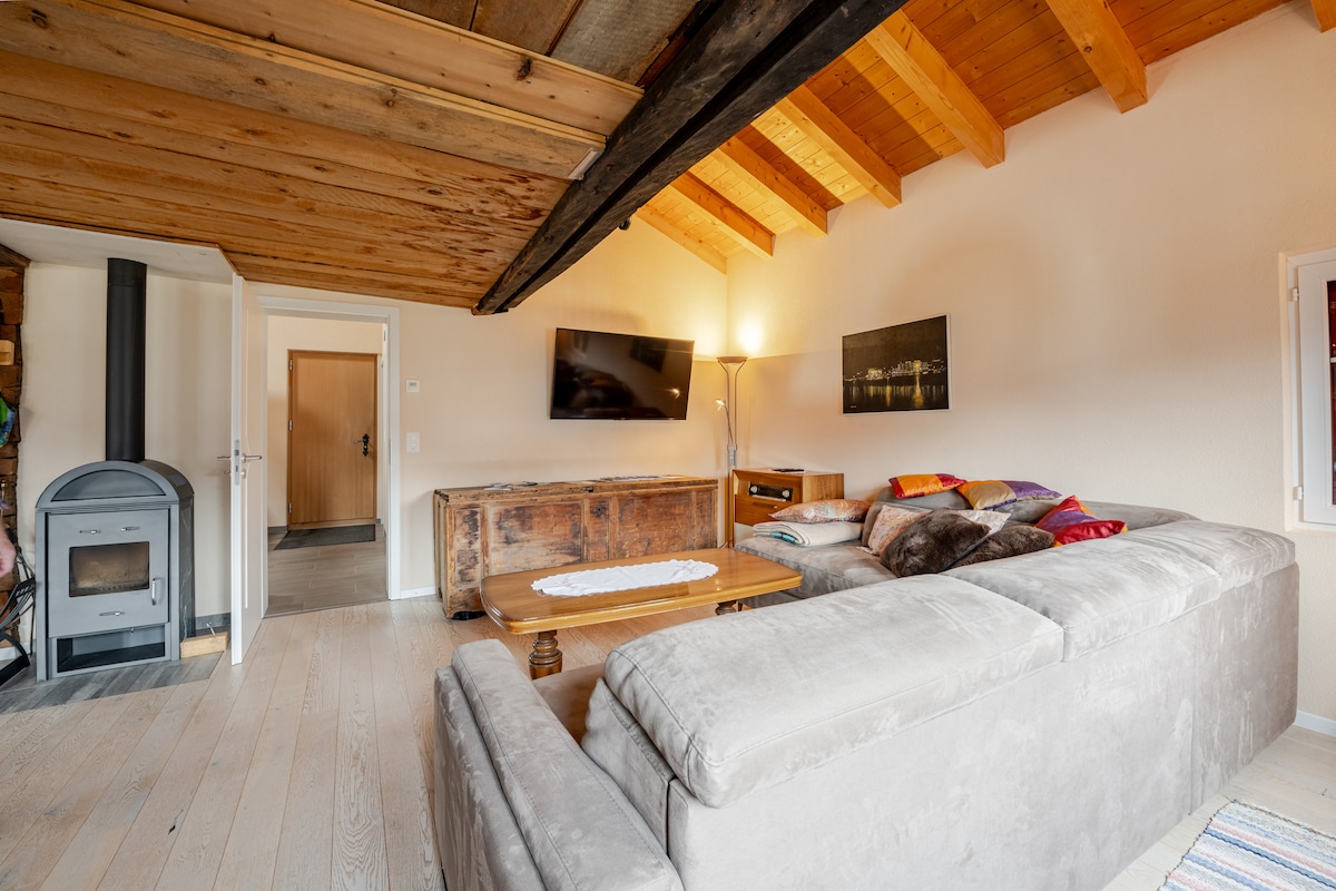 Luxury apartment with stunning views, sounds of mountain streams and cowbells. This former Swiss border patrol is a communal monument. Our house is the starting point to one of the best walks in Switzerland (according to Lonely Planet) and can take you to the emerald waters of Lac Tanay. In the winter, your family can enjoy the 250-meter long bunny hill ski slope just 100 meters away. I think 'absolutely quaint' is the best description.