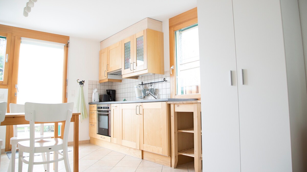 This exquisite guest-suite is right next to ski slopes and on hiking trails. The price indicated is for 2 persons, including breakfast in your room. The bed in the small adjoining room is ideal for a child/teenager (cost per night 40CHF extra). The studio with its own private entrance and free undercover parking, is located in a very quiet neighborhood. Village center and public swimming pool/jacuzzi, ski school (~5-10 mins walk). We welcome well behaved dogs at an extra cost per stay 60CHF.