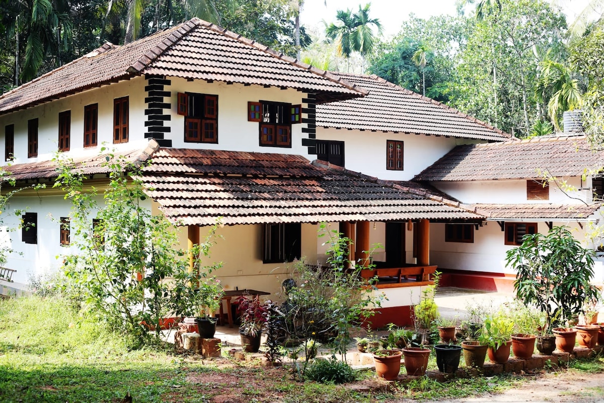 Bring the whole family to this great place with lots of room for fun. Tranquil setting in 9 acres working farm away from the maddening crowd yet 10 km from airport, 19 km from station, 15 min to airport 30 minutes to drive in beach, 2 hours drive coorg, Wayanad ,touristic sites . Staff available on site to attend to your needs including cooking if required, local hotels and shops are close by. Ideal for organising small family get togethers, small corporate private functions . Accomodate upto 22