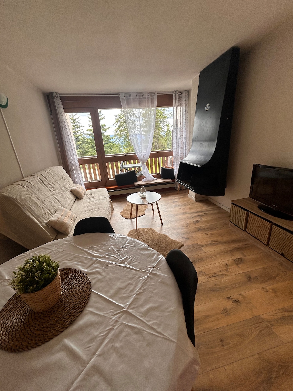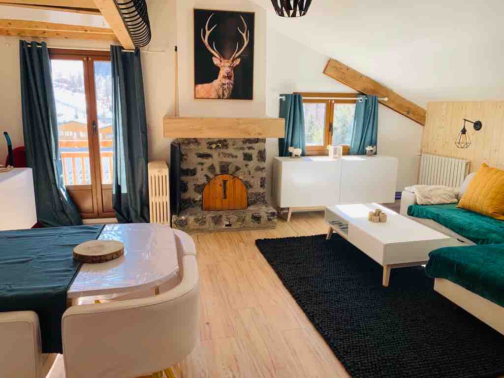Appartement neuf au pied des pistes !! Idéalement situé près de la piscine et proche de toutes commodités. Une fois votre véhicule garé dans le parking sous terrain, profitez de la station à pieds, le télésiège n'est qu'à quelques mètres ! L'appartement dispose d'une terrasse avec vue sur les pistes, d'une cuisine entièrement équipée et propose 6 couchages (4 adultes maximum): 1 chambre avec lit Queen size (160cm), 1 canapé convertible (140cm) dans le salon et 1 espace nuit avec lits superposés.