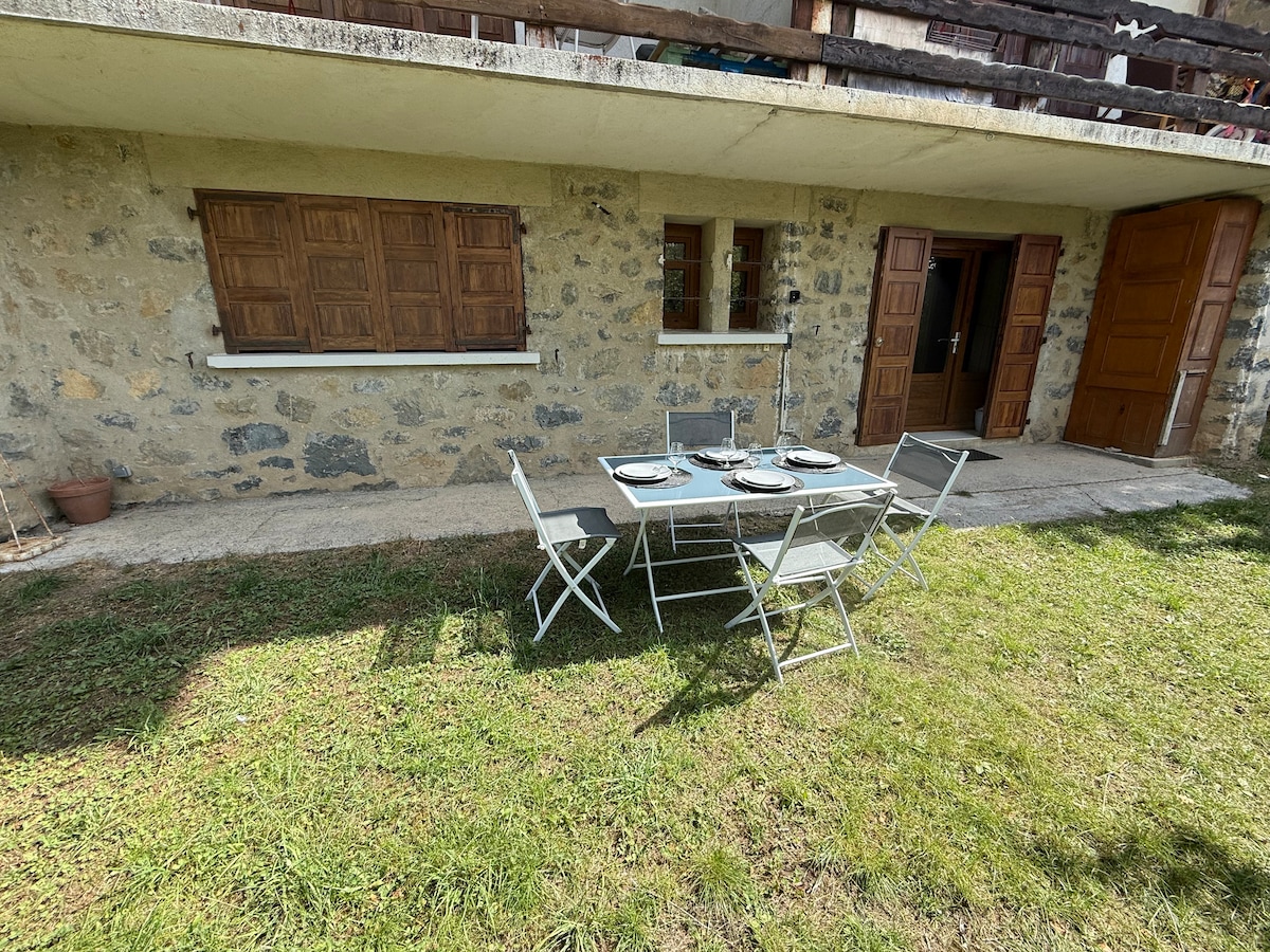 Dans un chalet un logement cosy tout neuf, accessible a pied par un petit sentier. Très calme, terrasse privative et jardin ,exposition sud/ouest vue panoramique exceptionnelle sur la vallée. Base de loisir et du centre du village 600m à pied,Parking public. 1 chambre parentale, un convertible pour 1 enfant dans la pièce principale, TV, Wi-Fi, salle de bain/WC. Cuisine : plaque cuisson, four,four micro-ondes frigo /congélateur, appareil raclette,mixeur, bouilloire machine à café.