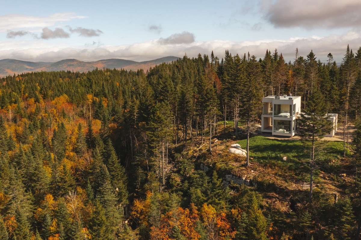 Évadez-vous dans cette micro-maison perchée au sommet d'une montagne et admirez la vue panoramique sur les sommets environnants à travers ses murs de verre. Détendez-vous dans le spa, accessible en toute saison, tout en profitant des plus beaux couchers de soleil. Découvrez ce trésor caché au cœur de la forêt boréale canadienne, alliant confort et fonctionnalité en toute saison. Une expérience intime et inoubliable, près de la ville mythique de Québec, classée au patrimoine mondial de l’UNESCO.