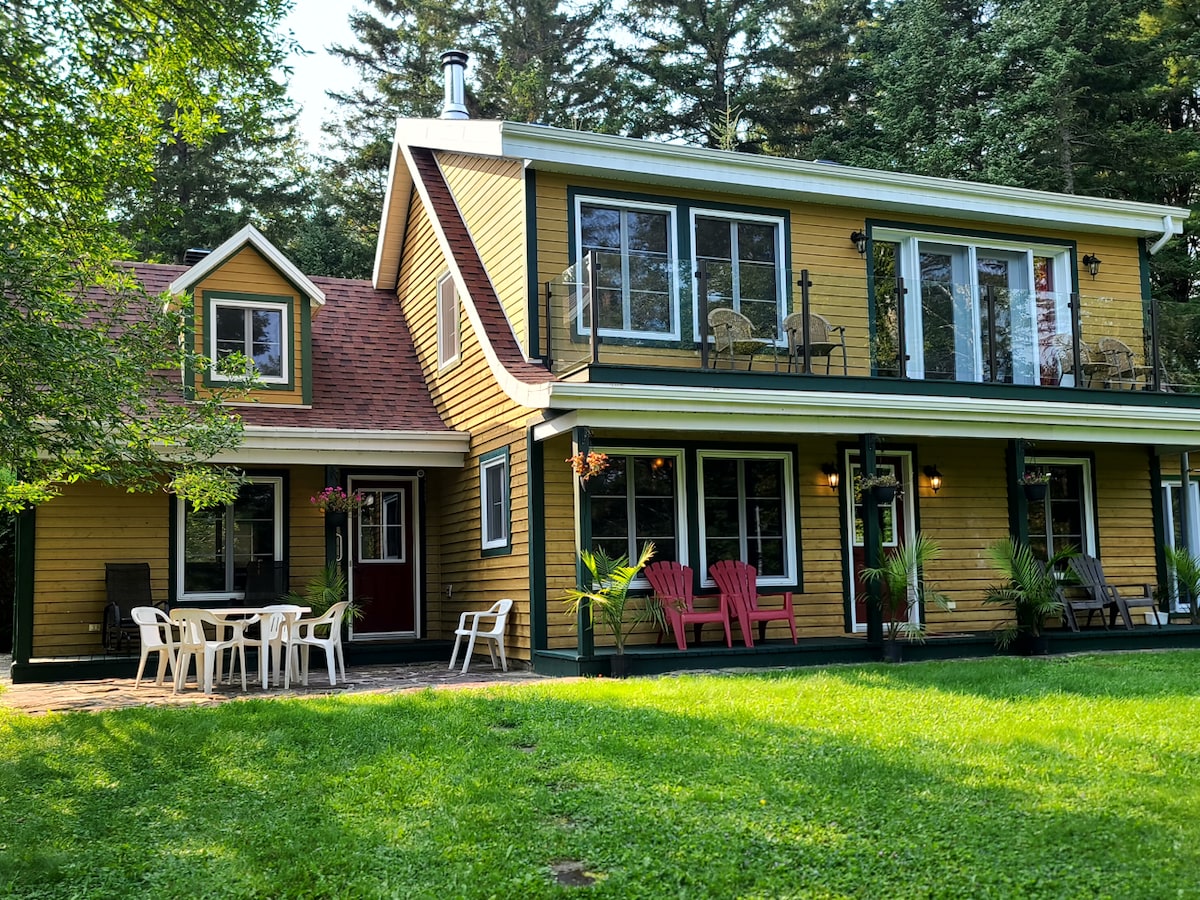 Bienvenue chez vous, que vous soyez une FAMILLE, un couple ou pour venir y travailler en TÉLÉTRAVAIL. Ce chalet complètement équipé saura vous plaire avec ses grandes fenêtres ouvertes sur la nature. Le chalet est près du bâtiment principal où vous pourrez y trouver une PISCINE CHAUFFÉE (fermée de octobre à mai), un spa, un SAUNA et BILLARD. À l'arrière du chalet se trouve le début d'un beau sentier pédestre qui longe un cours d'eau. À proximité vous pourrez y faire plusieurs activités.