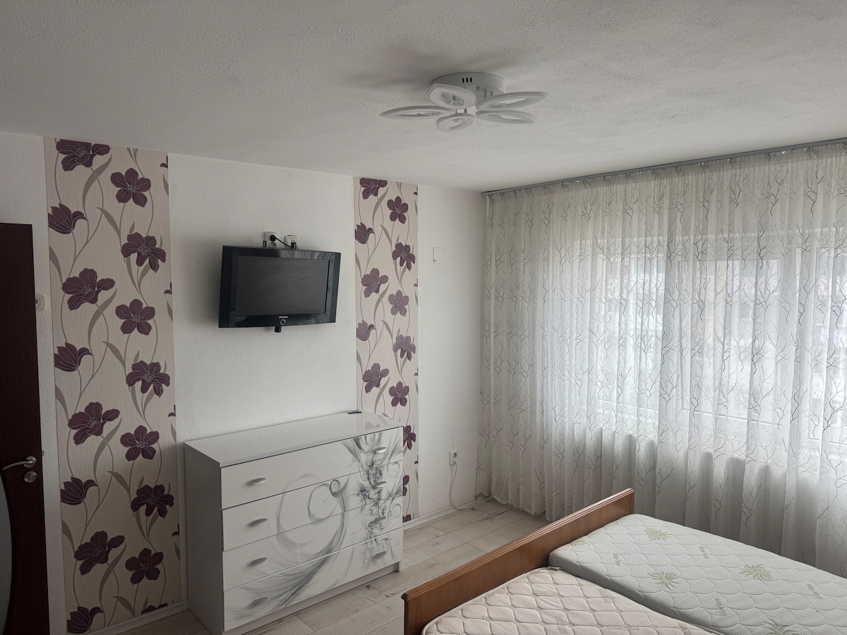 Sudio modern cu 2 camere, situat într-o zonă liniștită. Ideal pentru familie sau un cuplu, acest apartament oferă confort fiind izolat termic si fonic. - Living spațios cu canapea extensibilă, TV cu ecran plat - Dormitor cu pat matrimonial, dulap generos - Bucătărie deschisă, echipată cu aragaz, cuptor, frigider, mașină de spălat rufe - Baie modernă cu cabină de duș cu hidromasaj si radio - Proximitate față de supermarket-uri, restaurante,cafenele, parcuri,spital - Locuri de parcare cu plata