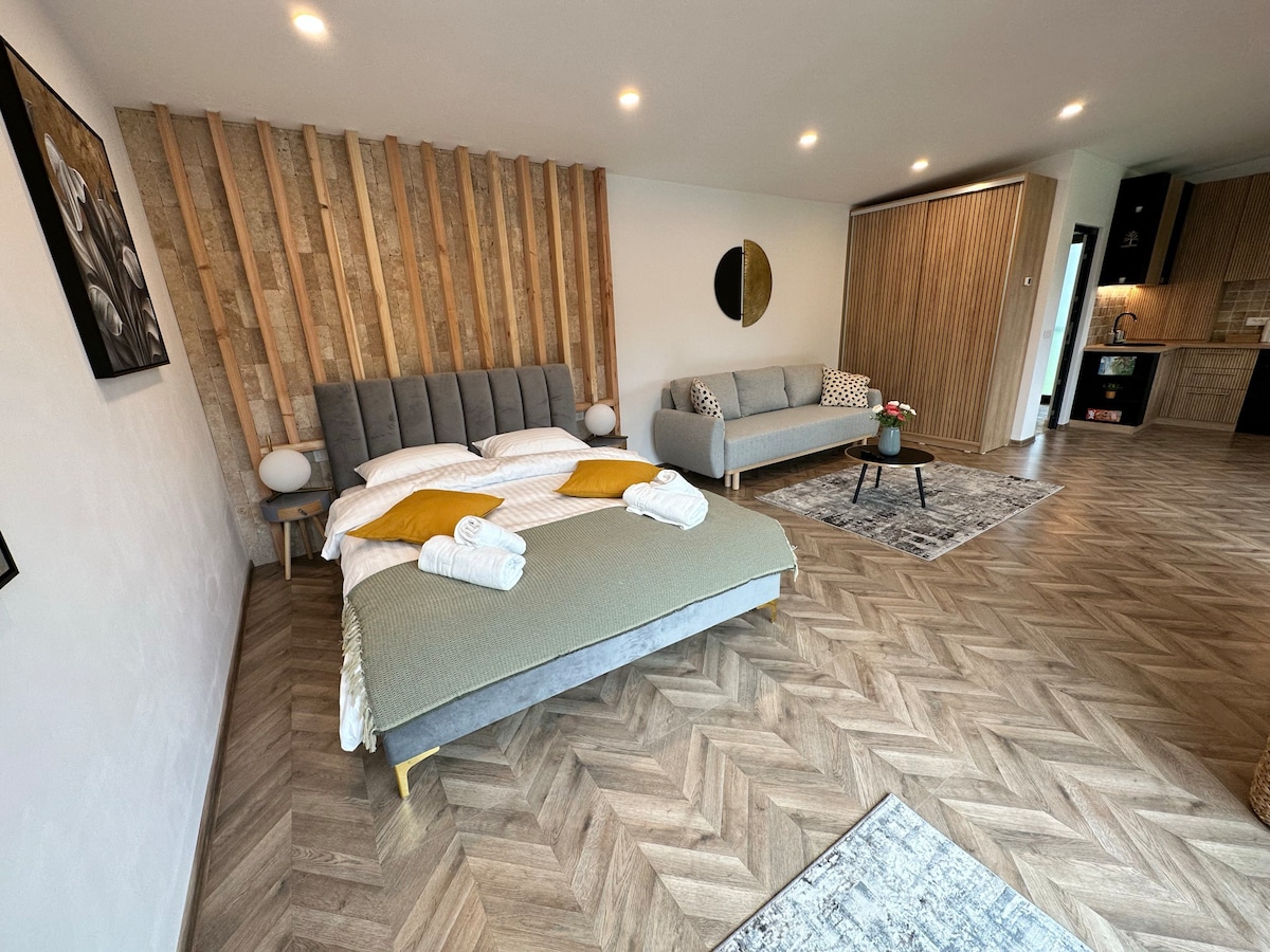 Sudio modern cu 2 camere, situat într-o zonă liniștită. Ideal pentru familie sau un cuplu, acest apartament oferă confort fiind izolat termic si fonic. - Living spațios cu canapea extensibilă, TV cu ecran plat - Dormitor cu pat matrimonial, dulap generos - Bucătărie deschisă, echipată cu aragaz, cuptor, frigider, mașină de spălat rufe - Baie modernă cu cabină de duș cu hidromasaj si radio - Proximitate față de supermarket-uri, restaurante,cafenele, parcuri,spital - Locuri de parcare cu plata