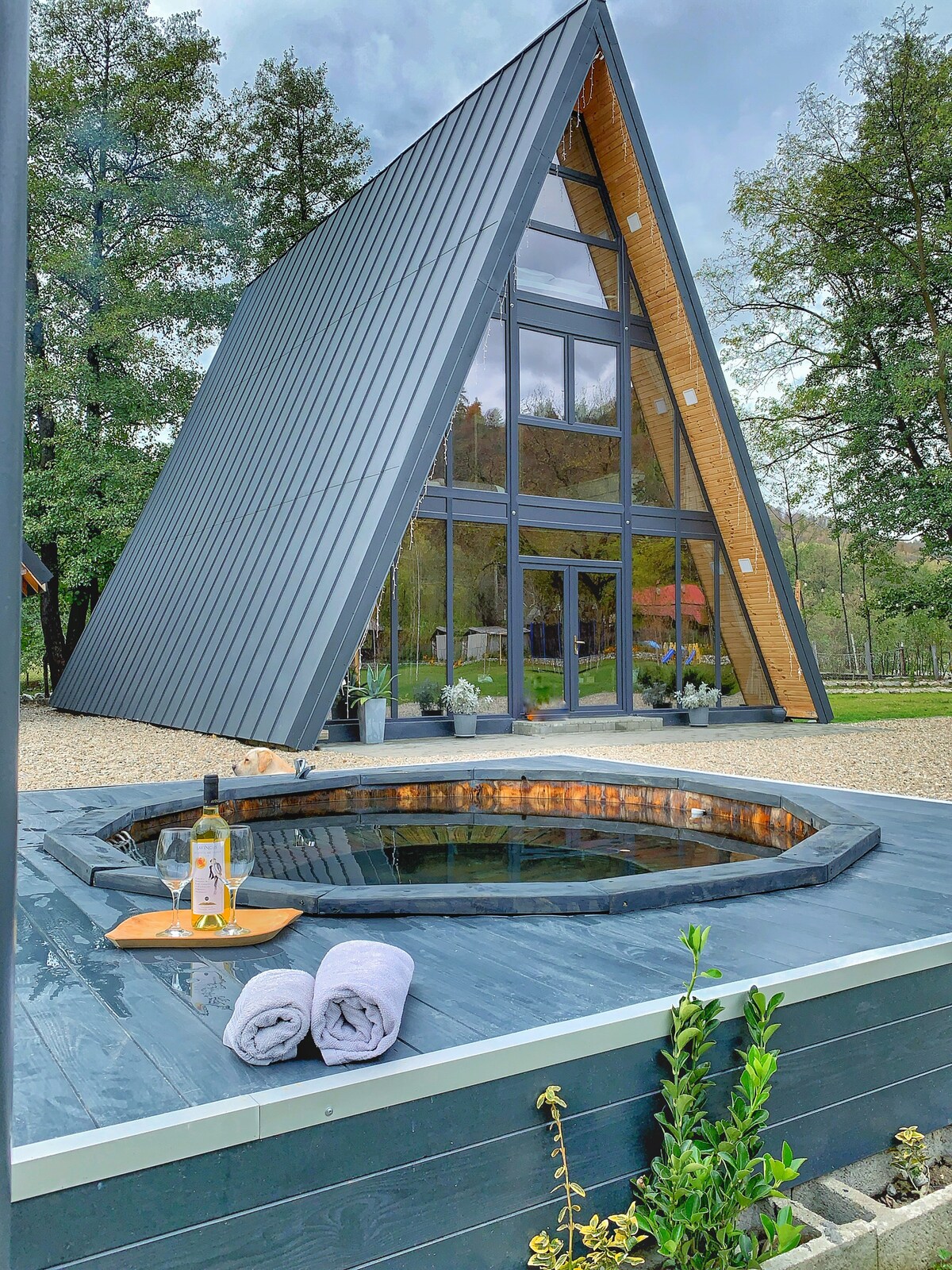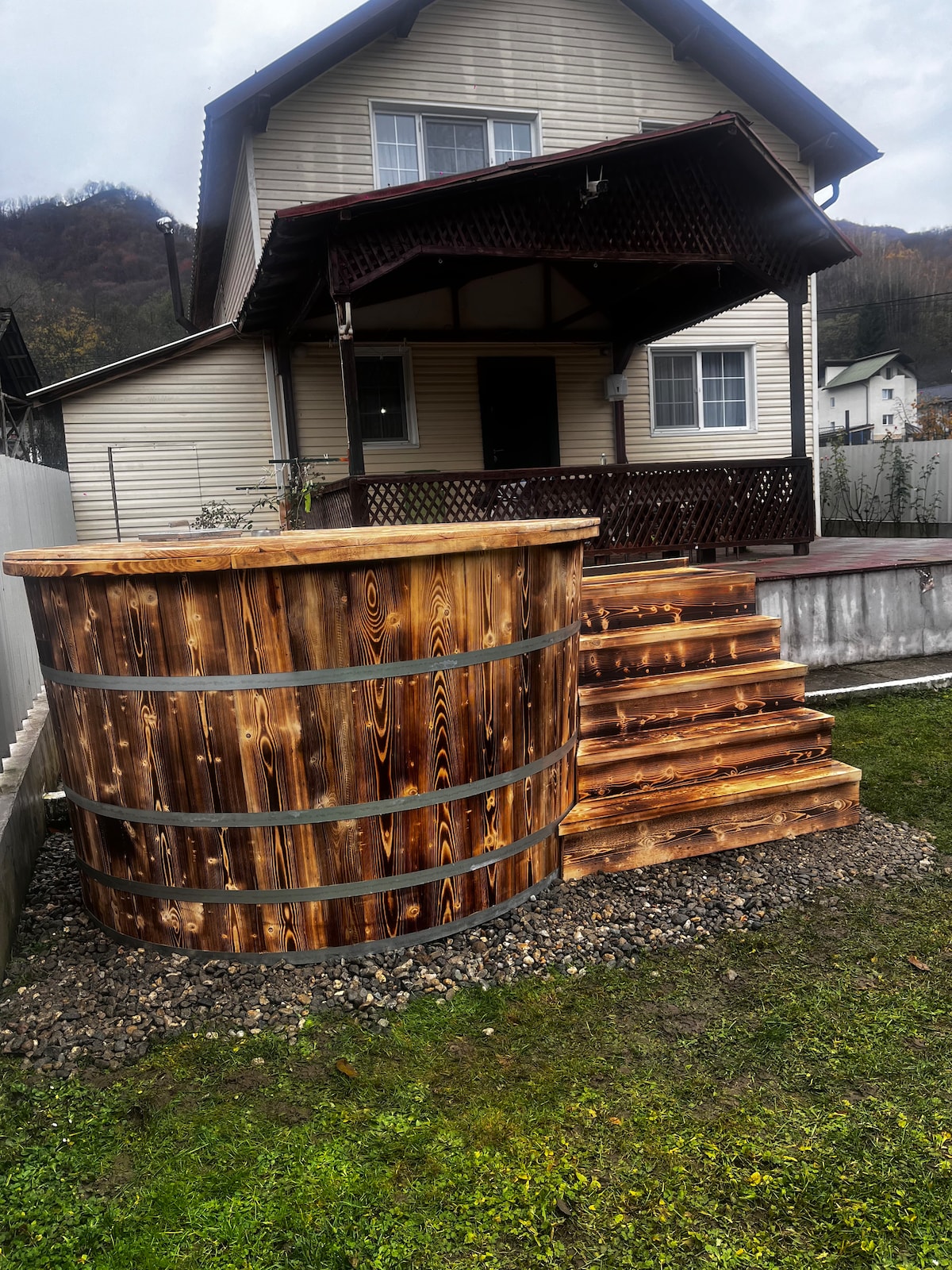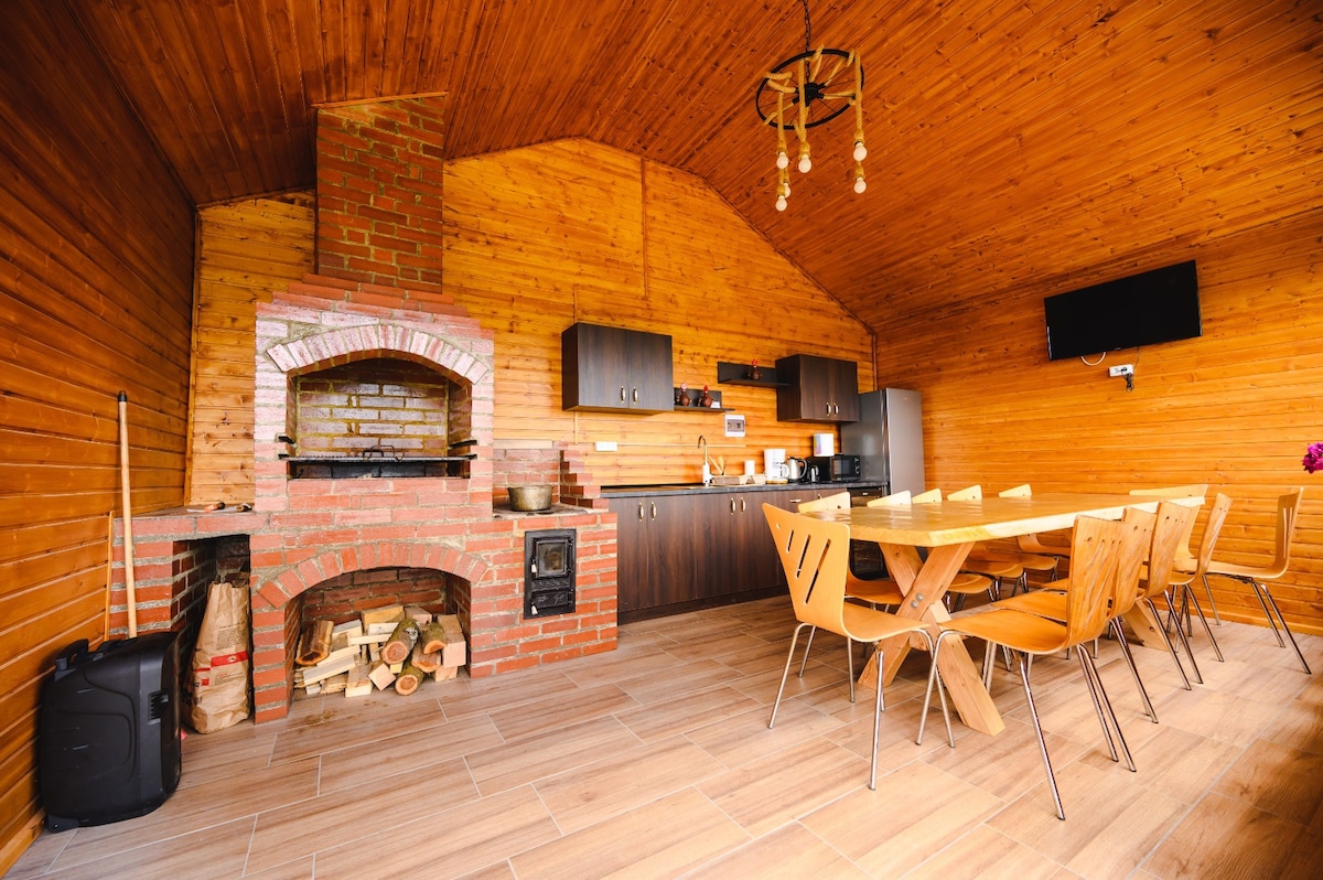 Vilă cu 7 camere, cu băi proprii, tv-uri smart, mobilate modern, sala de mese încăpătoare și bucătărie utilată. În exterior avem piscină încălzită,grătar, cu plită, cuptor, mobilier de gradină, pavilion cu pereți laterali, leagăn, fotolii suspendate, fotolii puf, hamac, ciubar și loc de parcare supravegheat video. Wi-fi interior si ext.