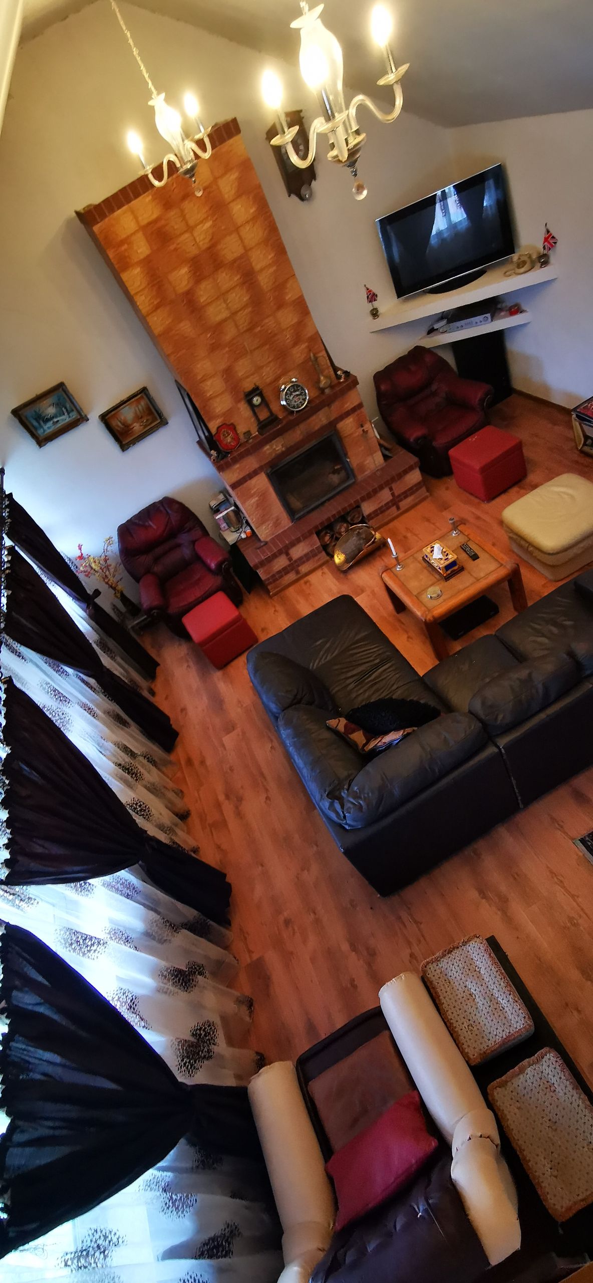 4 dormitoare cu paturi matrimoniale si bai proprii Zona de living cu canapea extensibila si una fixa Zona de dining cu bucatarie complet utilata are iesire la terasa din spatele cabanei la zona de BBQ cu gratar,plita,disc,ceaun si rotisor electric Proprietatea dispune de piscina exterioară incalzita pe tot parcursul anului, foc de tabara, pastravarie, loc de joaca, ciubar cu apa calda, sauna, 2 labradori prietenosi si parcare privata.