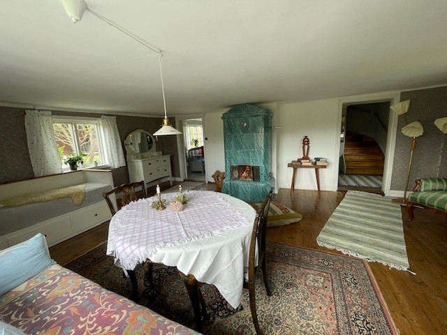 Slappna av i detta unika och lugna boende med stor mysfaktor Renoverad med en personlig inredning. På vintern kan man sitta framför brasan och njuta och är sommaren varm finns det AC. Stor uteplats med viss sjöutsikt. Sängarna är bäddade när ni anländer och det ingår handdukar Du har nära till liten trivsam badplats ca 300 meter. På din väg till badet går du genom en historisk miljö där det en gång låg en borgliknande byggnad. Stora ekar och gamla lindar kan berätta om tiden de varit med om.