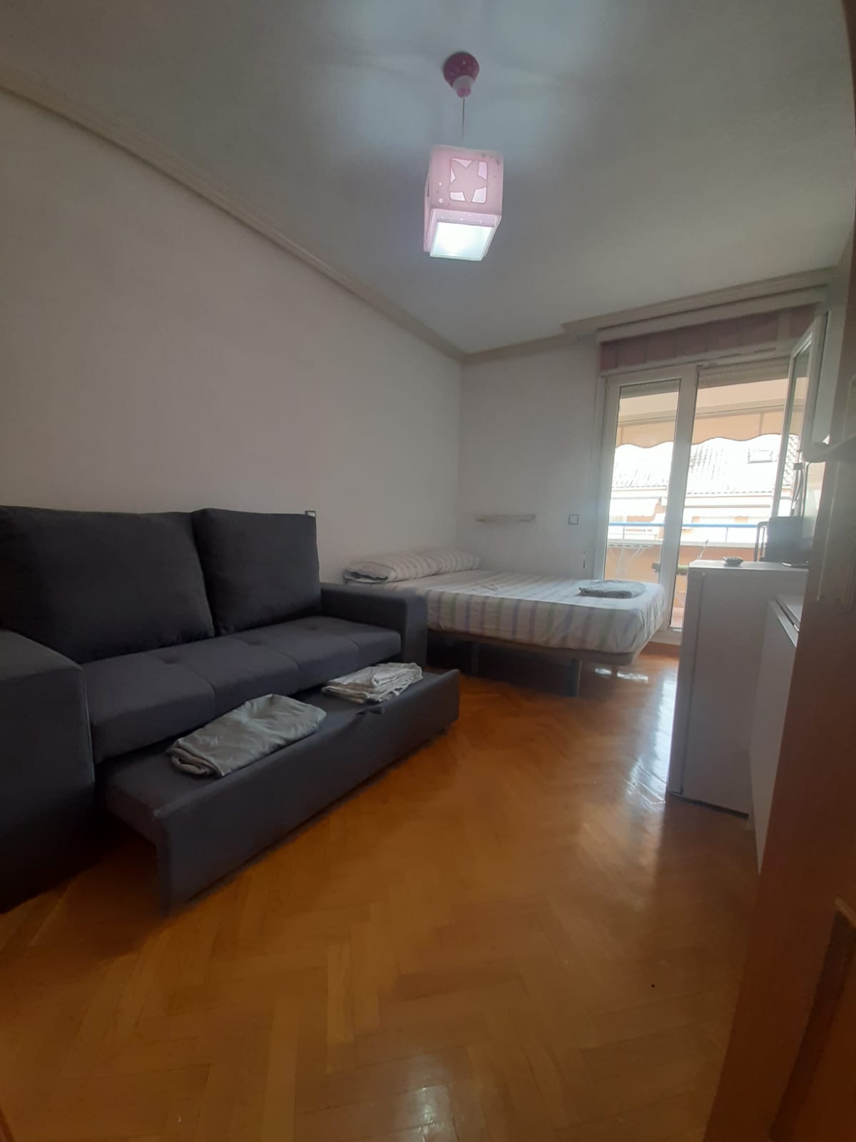 Estudio privado muy luminoso equipado con todo lo necesario para tu estancia en Madrid. Cocina completa, fibra óptica, Netflix, TV de 32", lavadora y secadora. Se incluye ropa de cama, toallas y menaje completo. Excelente conexión con el centro: metro (L1). Fácil acceso en coche por la M-40 y aparcamiento gratuito en la calle. Ubicado en zona tranquila residencial cerca de la calle comercial Pedro Laborde.