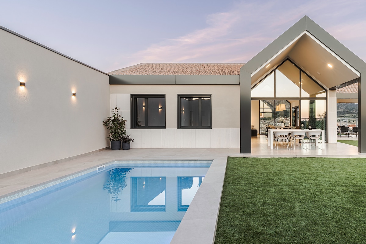Imagina una casa de 200 m2 rodeada de naturaleza, con techos altos de 5 metros que le dan una sensación de amplitud y luminosidad. El diseño es moderno y elegante, pero en armonía con el entorno natural. La casa tiene 4 habitaciones, dos de ellas en suite, perfectas para privacidad y confort. Los 3 baños están cuidadosamente diseñados, con acabados de alta calidad. La zona exterior es un verdadero paraíso: una piscina que se integra perfectamente con el paisaje y un porche acristalado de 8m