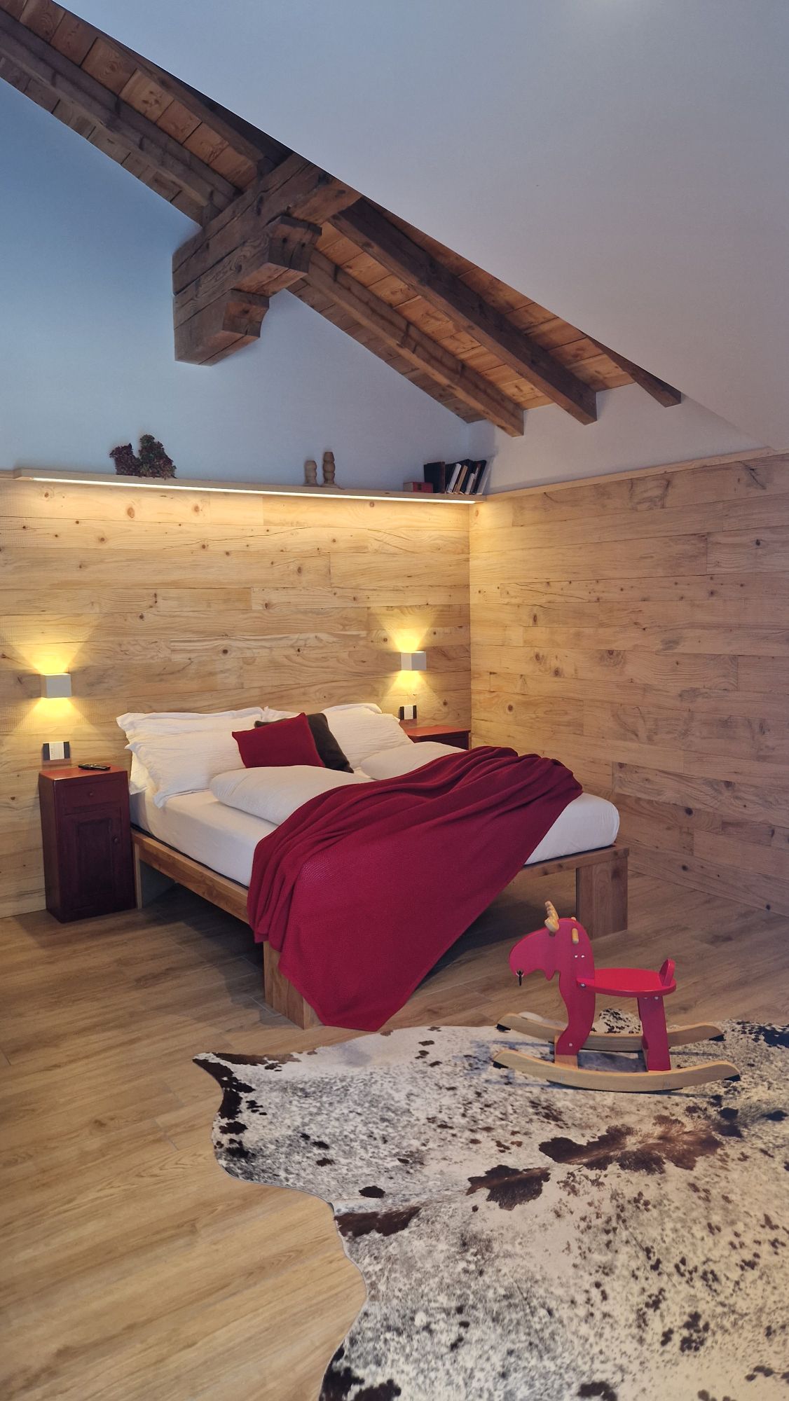 La camera è luminosa, l'atmosfera rilassante e tranquilla. Gode di una bella vista sul giardino, la valle e le montagne del versante orobico. La casa è situata tra le vigne a terrazzi del dosso della Maroggia, sul versante retico della media Valtellina: luogo isolato e lontano da mete eccessivamente turistiche quanto basta per garantire il giusto relax, permette di raggiungere in poco tempo il fondo valle e le valli circostanti, mete di trekking o semplici immersioni nella natura.
