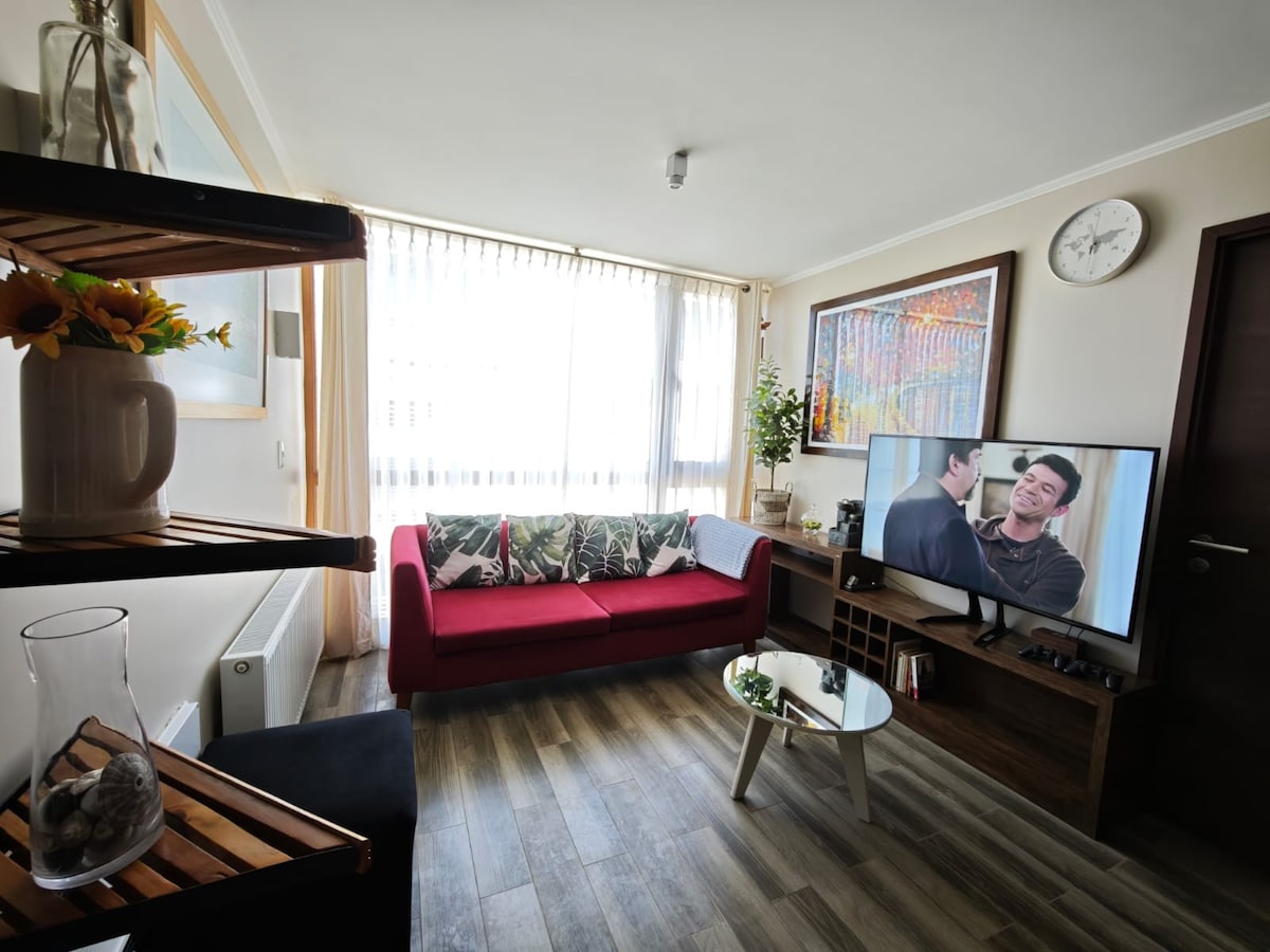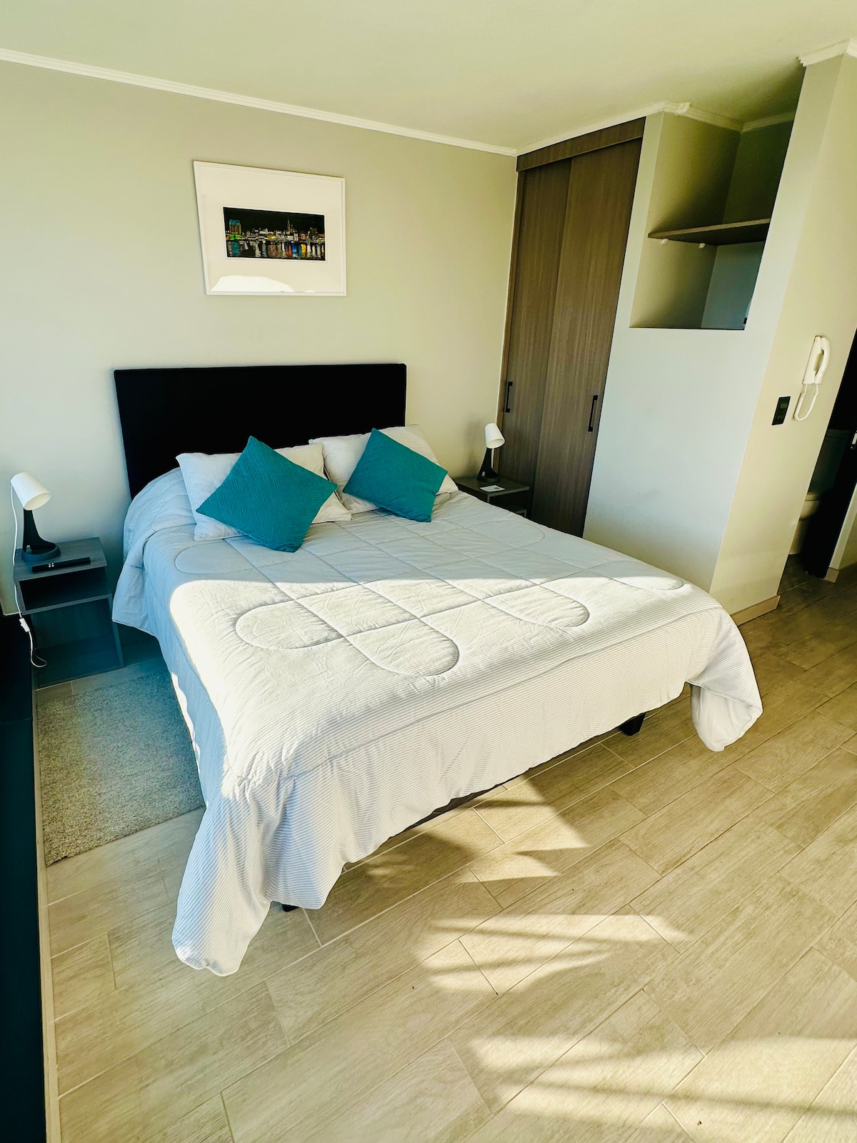 Disfruta de la comodidad y estilo en este departamento full equipado, ubicado estratégicamente con acceso a Av. Picarte y Costanera, a solo minutos del centro de Valdivia. - Living comedor. - Cocina full equipada: horno eléctrico, campana, microondas, lavavajillas, refrigerador, hervidor, tostador, cafetera y licuadora. - Baño con termo eléctrico, plancha, secador de pelo y toallas. - Dormitorio con cama de dos plazas. - Terraza. - Wifi 800mbps - Estacionamiento techado al interior del edificio.