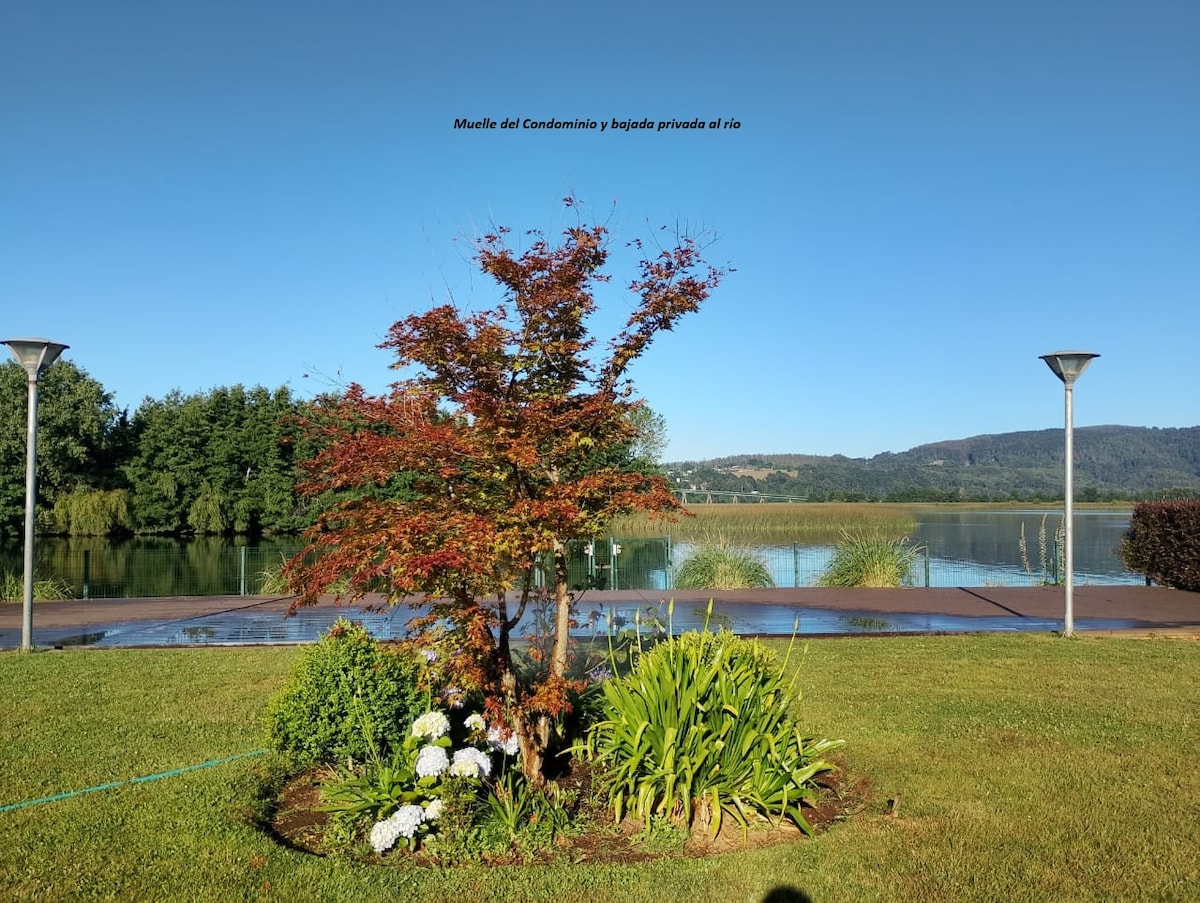 Vista espectacular al santuario de la saturaleza, ubicado en Isla Teja departamento de 2 dormitorios 2 baños, ambas con camas matrimoniales,con marina privada A pasos de Parque Saval,restaurantes en isla teja, cerca del casino,de la Universidad Austral,Jardín Botánico,Museo,Coneccion inmediata Puente Cruces camino a la costa y salida Norte por Puente Cau Cau