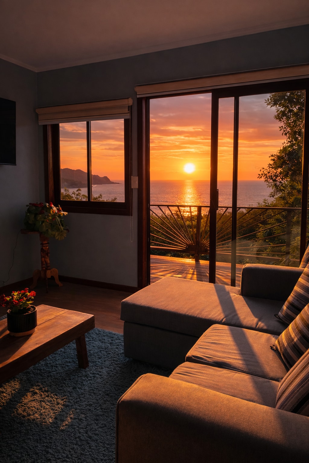 Acogedora cabaña "Amancay" con vista al mar. Consta de 1 ambiente, cabaña totalmente equipada, Smart Tv, plumones de pluma, wifi, parrilla y una amplia terraza frente al mar. Este estudio se encuentra pareado con muy buena aislación.