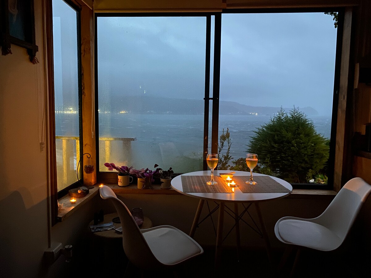 Despierta cada día con una vista inolvidable a la bahía de Corral y al inmenso mar. Este refugio para dos, parte de Mirador de Niebla, está pensado para quienes buscan descanso, privacidad y conexión con el entorno. En esta estación del año disfruta atardeceres desde el Refugio la intensidad de la lluvia y el viento , el sonido del océano. A pasos del Castillo de Niebla y de la playa grande, es un lugar para recordar.