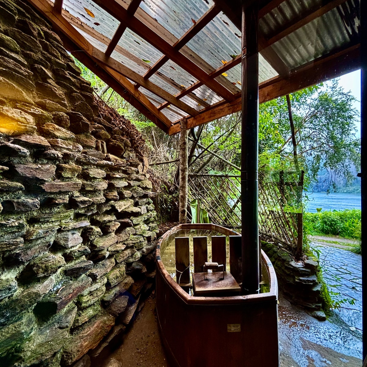 Enjoy a unique experience in the native forest with a tinaja for 6 people. Cozy house 20 minutes from Valdivia, with a king-size bed in suite, queen-size bed, and comfortable sofa bed. Direct access to the estuary and a quiet environment ideal for relaxing, creating, or reconnecting with nature. We offer sound therapy and Reiki sessions. The tinaja is available as an extra service. Price: $55,000 per use. Must be requested 24 hours in advance.