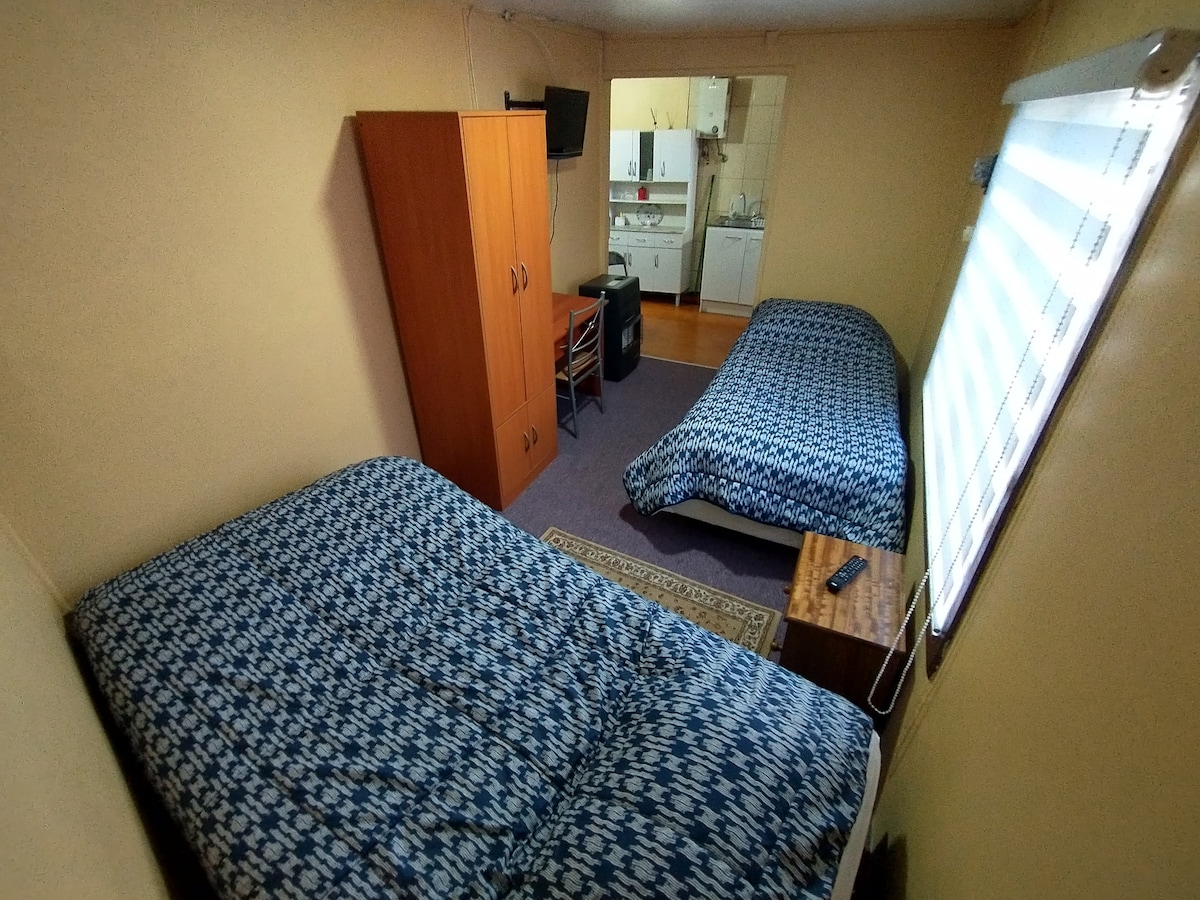 Disfruta de la sencillez de este alojamiento tranquilo y céntrico. Lugar ideal para descanso y larga estadía, muy bien equipada. Ubicada a 10 minutos del centro de la ciudad con locomoción a la salida de la puerta, además se encuentra a pasos del inicio de la costanera. Cuenta con 2 camas de plaza y media y 1 de dos plazas, conexión wifi, televisión, agua caliente, entre otros.