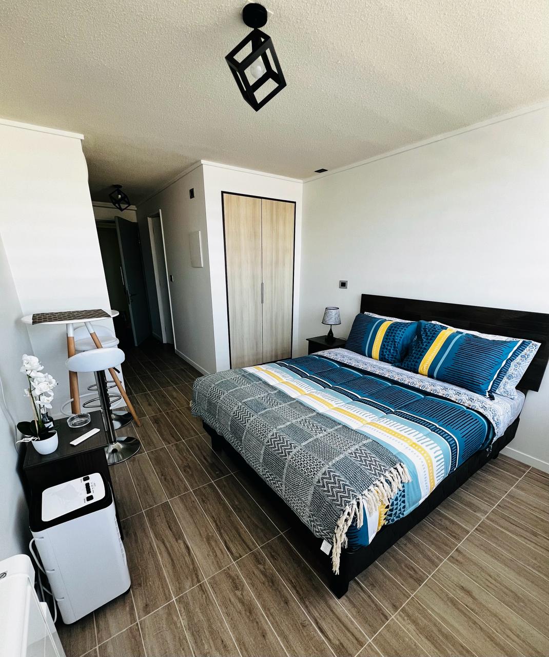 Disfruta de la comodidad y estilo en este departamento full equipado, ubicado estratégicamente con acceso a Av. Picarte y Costanera, a solo minutos del centro de Valdivia. - Living comedor. - Cocina full equipada: horno eléctrico, campana, microondas, lavavajillas, refrigerador, hervidor, tostador, cafetera y licuadora. - Baño con termo eléctrico, plancha, secador de pelo y toallas. - Dormitorio con cama de dos plazas. - Terraza. - Wifi 800mbps - Estacionamiento techado al interior del edificio.