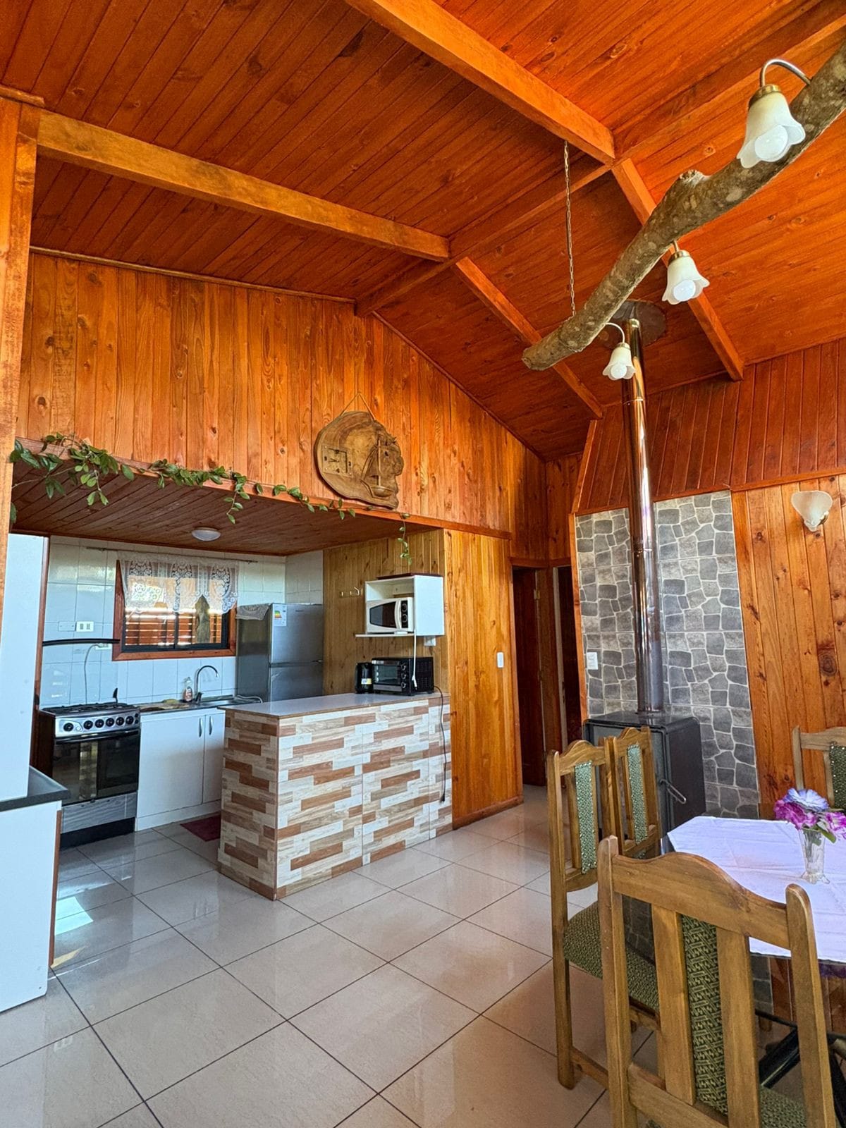 Pequeña cabaña rodeada de árboles frutales y naturaleza muy acogedora, el dormitorio matrimonial está en una buhardilla, un sofa cama en el primer piso, con terraza , piscina , estacionamiento y pequeña parrilla, ideal para un matrimonio sólo , con un hijo o acompañante.Disponemos de lavandería el costo por 10 kgs. es de $ 5.000.- incluye secado. La calefacción es solo para el invierno. Arrendamos kayac para 2 personas y Canoa canadiense