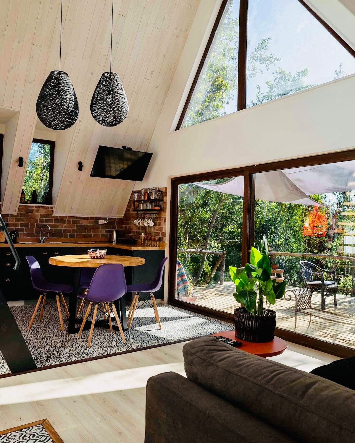 Espacio que llama a la tranquilidad y el descanso. Buena iluminación. Hermosa vista. Muy acogedor. Cuenta con cocina equipada. Sofá cama de 1.5 plazas en espacio común y cama King en dormitorio. Ideal para desconectarse de la rutina. - Incluye sábanas en la cama king, no así en el sofá cama. - No incluye toallas. - Ideal ir con vehículo, ya que se encuentra a 1,5 kms. de la ciudad. - Wifi - Sanitización con Ozono.