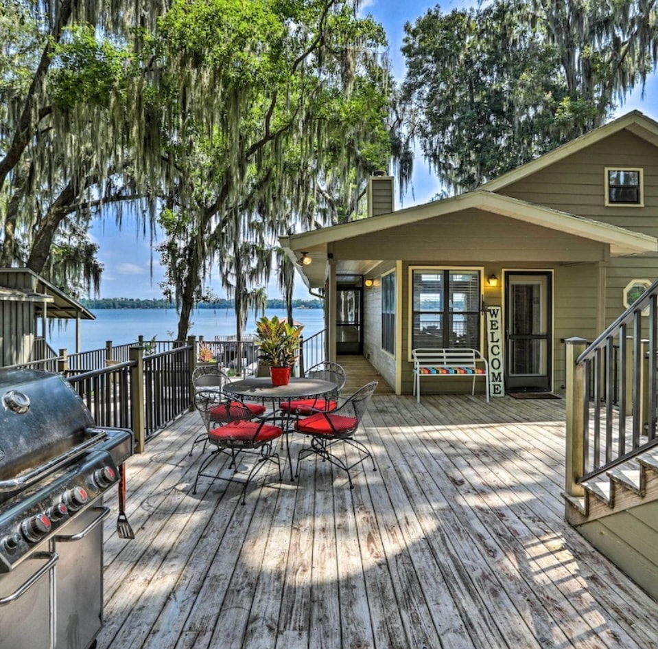 Welcome to your lakeside escape—where mornings start with coffee on the wraparound porch and the calm water sets the pace for the day. Spend afternoons fishing from the dock, paddling out in the kayaks, or simply soaking in the peaceful views. Fire up the grill for an easy dinner as the sun goes down, then gather inside for a movie night with TVs throughout the home. This lake house is all about slowing down, making memories, and enjoying simple moments by the water.