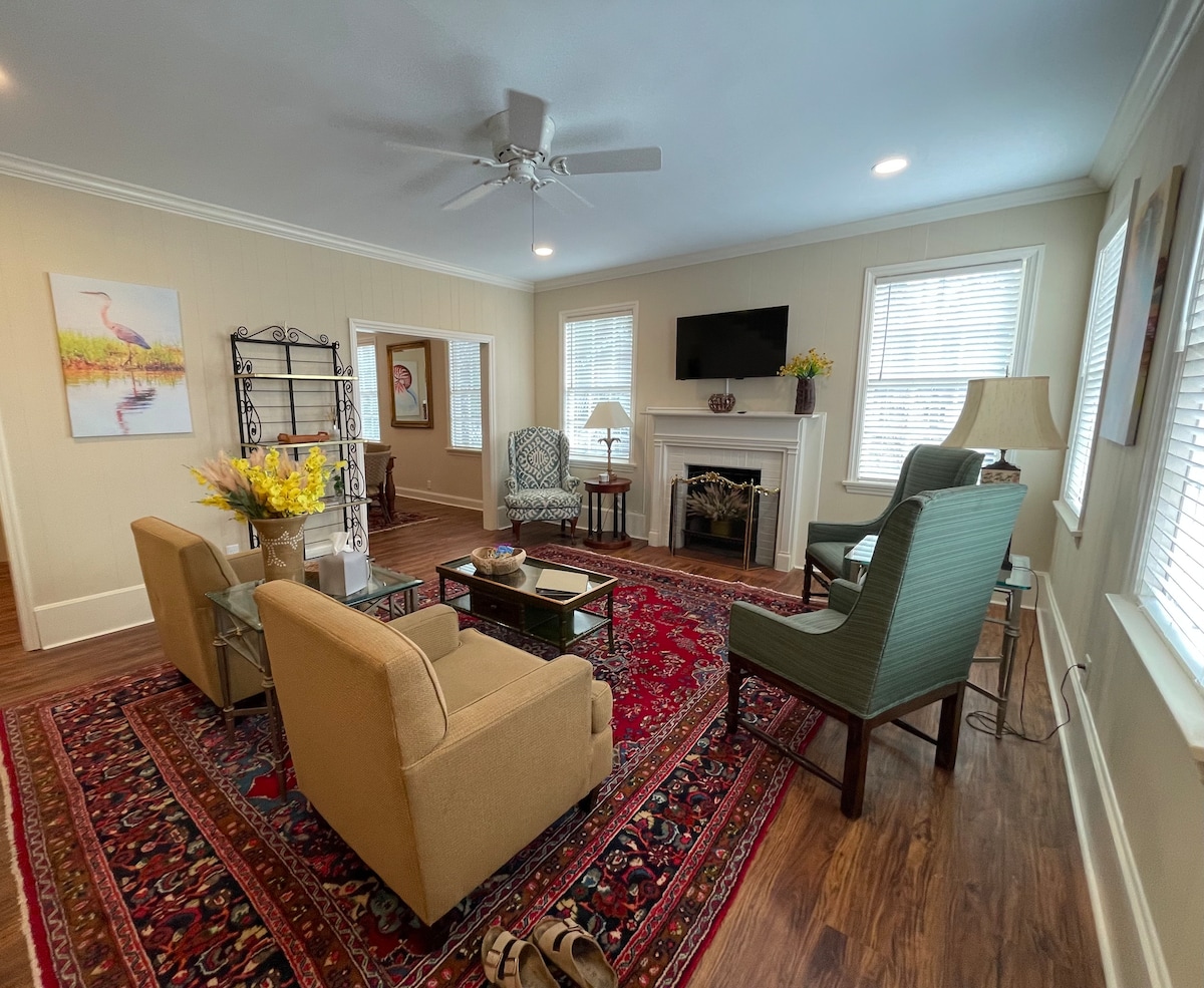 Enjoy the laid back. simple, life of a small southern town. Our old house with hardwood floors, nice comfortable furniture, and vintage decorating choices is perfect for a leisurely get away or business. Great stay for travel nurses or others working temporarily in the area, or just a layover during travels. An air mattress and pack and play are also available. We do allow pets with a pet fee and rules.