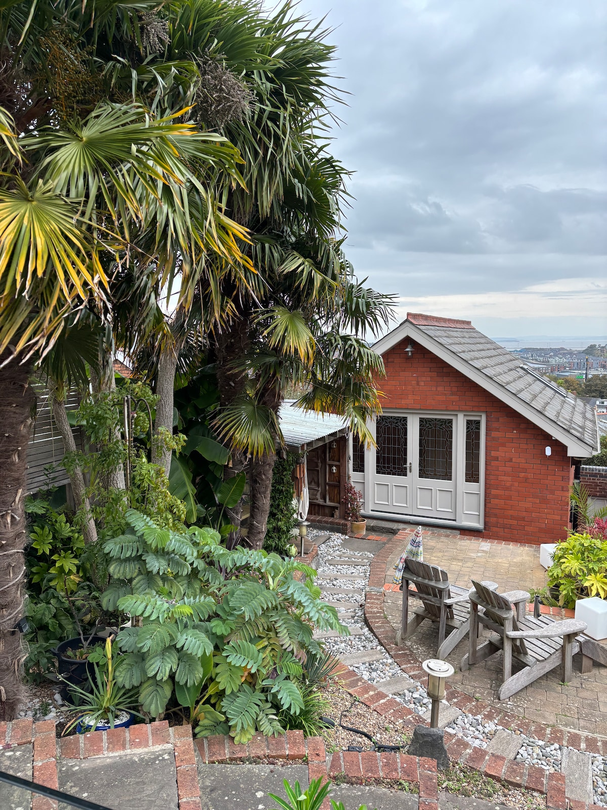 This memorable place is anything but ordinary. Originally built 30 years ago using bricks from a historic Victorian Barry Hospital and has now received a complete interior renovation in 2025. We hope you ll love it! You will have a small private parking space outside the building with private entrance. Self check in from a key safe. Use of a tropical planted garden, patios and undercover seating area (The Hut) with a swing seat, cushions and blankets. Stunning views across the sea to England.