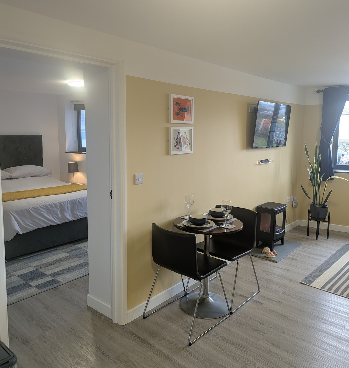 Experience the ideal seaside getaway in our newly renovated ground-floor apartment. With stunning sea views, a well-equipped kitchen, smart TV, and fast WIFI, you'll have everything you need to relax and unwind. Enjoy a luxury king-sized bed overlooking a stone courtyard. Only steps away from the beach, and a short five-minute walk to the town centre and train station. Easy access to all the shops, bars, and eateries Aberystwyth has to offer. The perfect setting for an idyllic seaside getaway.