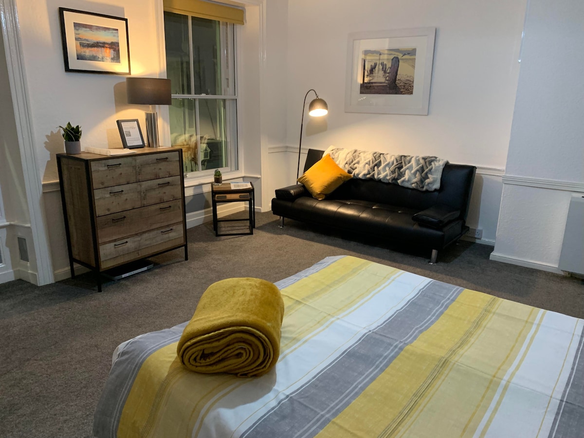The Victorian building, at 6A Bridge Street, accommodates this renovated, 1st floor, self-contained flat which has been sympathetically refurbished to a high standard. The flat is accessed via a staircase, some 16 steps, to the 1st floor. It offers bright & airy accommodation for up to 3 people comprising of a COMBINED living/sleeping space with wifi, tv, kitchen, shower room & separate toilet. Its town centre location makes it convenient for the beach, prom, restaurants, pubs & transport.