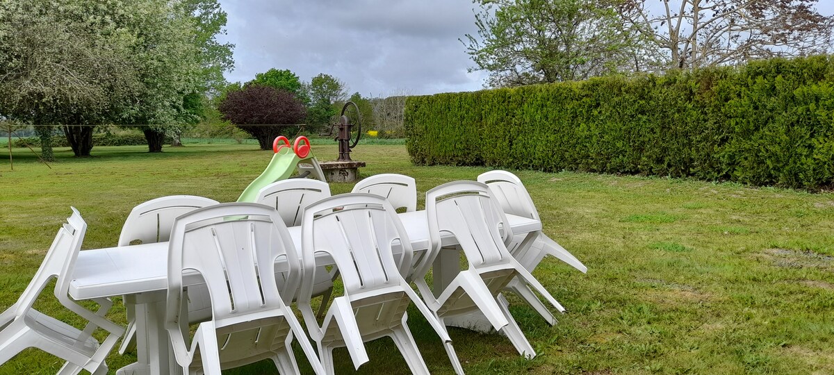 Welcome to our gîte Les Bruyères of Jeanne and René 🌼Holiday rental and professional stay (WIFI). SHEETS and towels provided. Between Berry and Sologne, you will enjoy your stay with family or friends, in peace, surrounded by nature🦔🦌, in a peaceful house of 72m², not overlooked, on a large enclosed plot of land, 20 minutes from the 🐼Zoo de Beauval 🦜, very close to the Châteaux de la Loire.