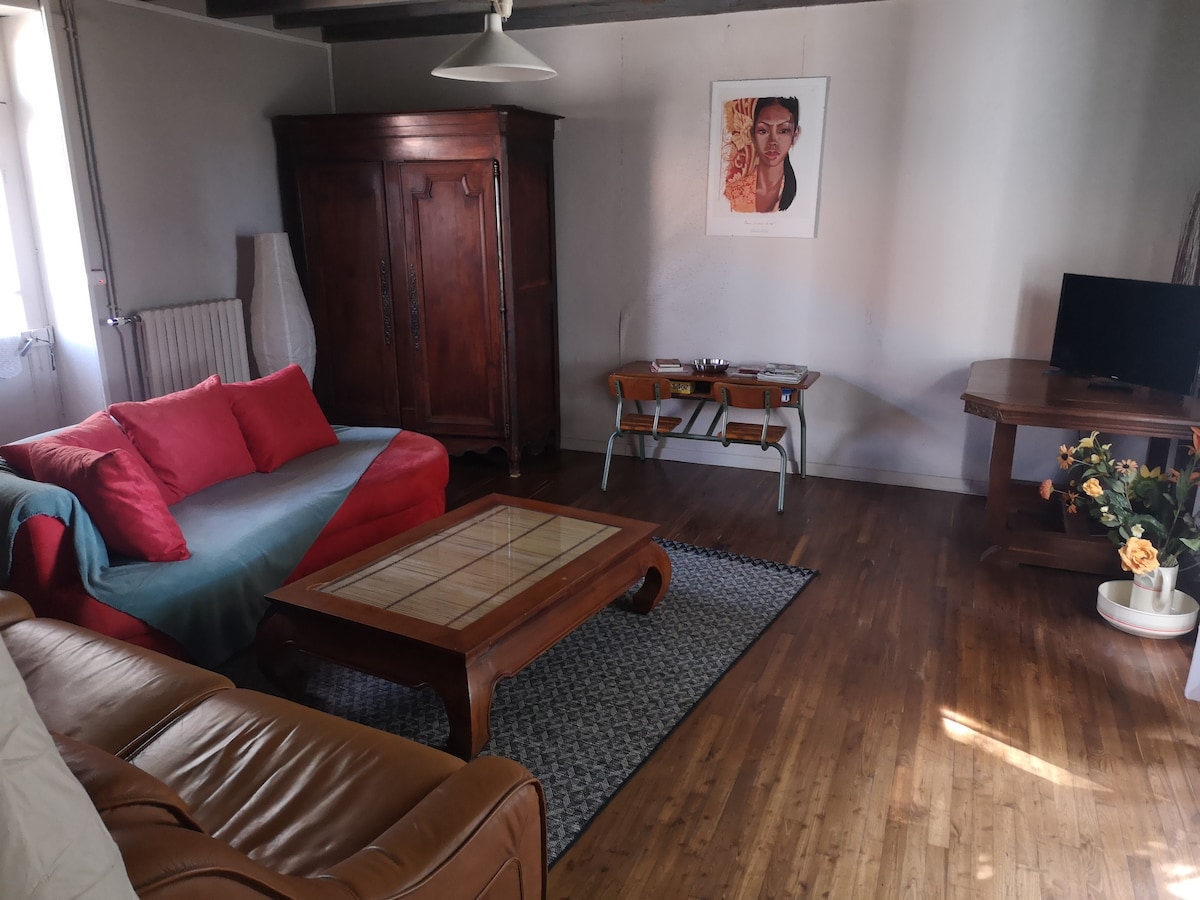 Petite maison de charme, clôturée à la campagne et idéalement située. Animaux acceptés gratuitement. Non adaptée aux enfants en BA & pers à mobilité réduite. Proche toutes commodités. A 4 min des Iles de Payré (lieu de promenade au bord de l’eau). A 20 min de Poitiers Sud & la Vallée des singes. Futuroscope 40 min.Marais Poitevin,Abbaye de St Savin à 1h00. La Rochelle à1h15 .Vous pourrez profiter du terrain pour vous détendre, manger dehors…Nos vélos,molkky,autres jeux sont à votre disposition.