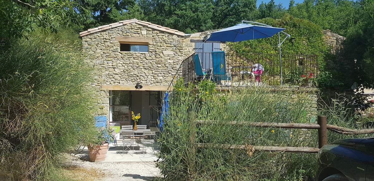 Situé dans la Drôme, le studio est indépendant, au rez-de chaussé d'une maison en pierre, face à un jardin fleuri et arboré. Lumineux l'après-midi, frais en été, il est entièrement équipé avec kitchenette et mange debout. La salle de bain dispose d'une douche à l'italienne, d'une vasque et de toilettes classiques. Deux couchages sont disponibles : un lit dans la chambre à coucher de 120x200cm et un canapé lit de 140x200cm dans la pièce principale.