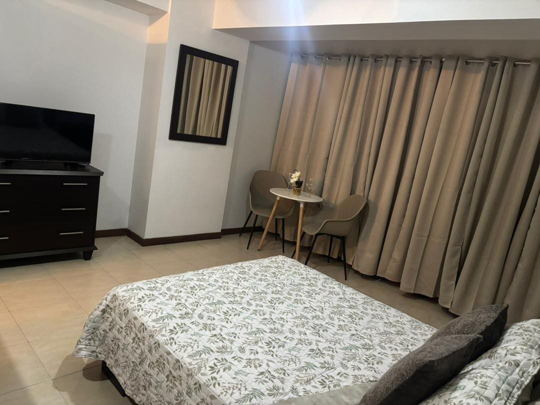 ¡Disfruta de una estancia perfecta en este acogedor apartamento para 2 personas, diseñado para ofrecerte confort y tranquilidad en el corazón de la ciudad! Cuenta con cocina equipada, cama queen, Smart TV, wifi, aire acondicionado, un baño moderno y todas las comodidades que necesites. Ubicado en una zona céntrica, tendrás cerca mercados, farmacias, panaderías y centro comercial.