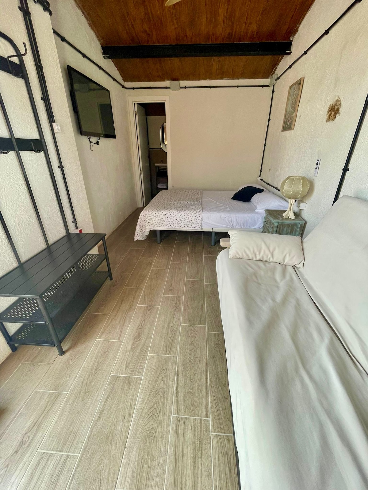 Nuestras habitaciones doble han sido reformadas para ofrecer a nuestros clientes un espacio perfecto para su estancia. Equipadas con 1 cama king size o con 2 camas individuales (previa solicitud y disponibilidad), cuentan con un amplio espacio de 18 metros y ropa de cama de algodón. En cuanto al baño es espacioso, y con una ducha amplia de fácil acceso. Cuenta con terraza privada con mesa y sillas con vistas a la calle San Vicente Martir, un espacio que invita a disfrutar de una copa de vino.